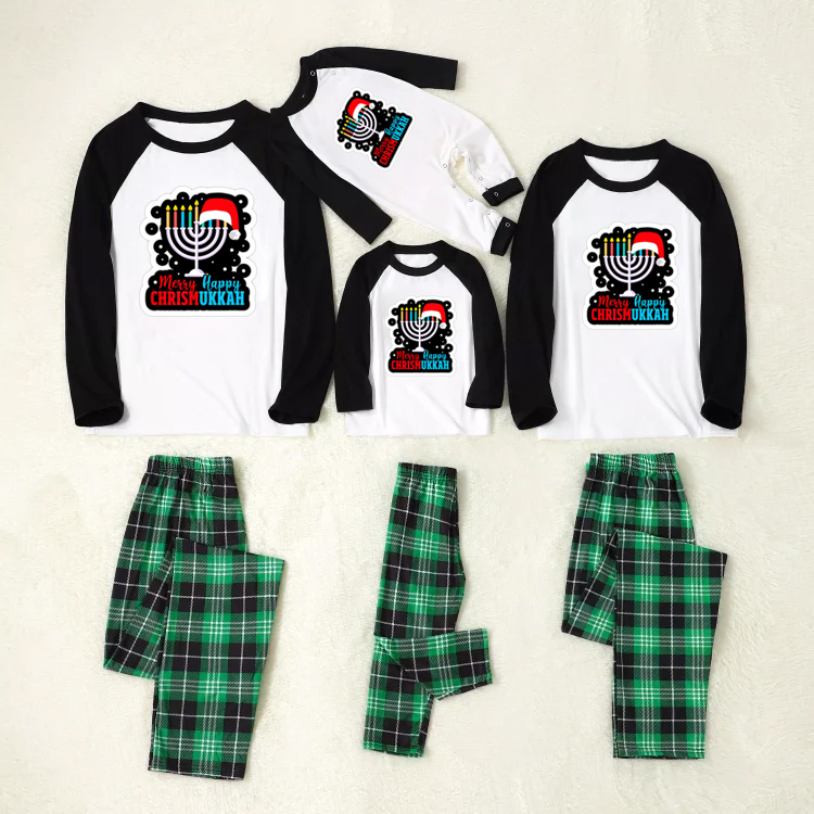 Merry Christmas Happy Hanukkah Green Plaids Family Matching Pajamas Set