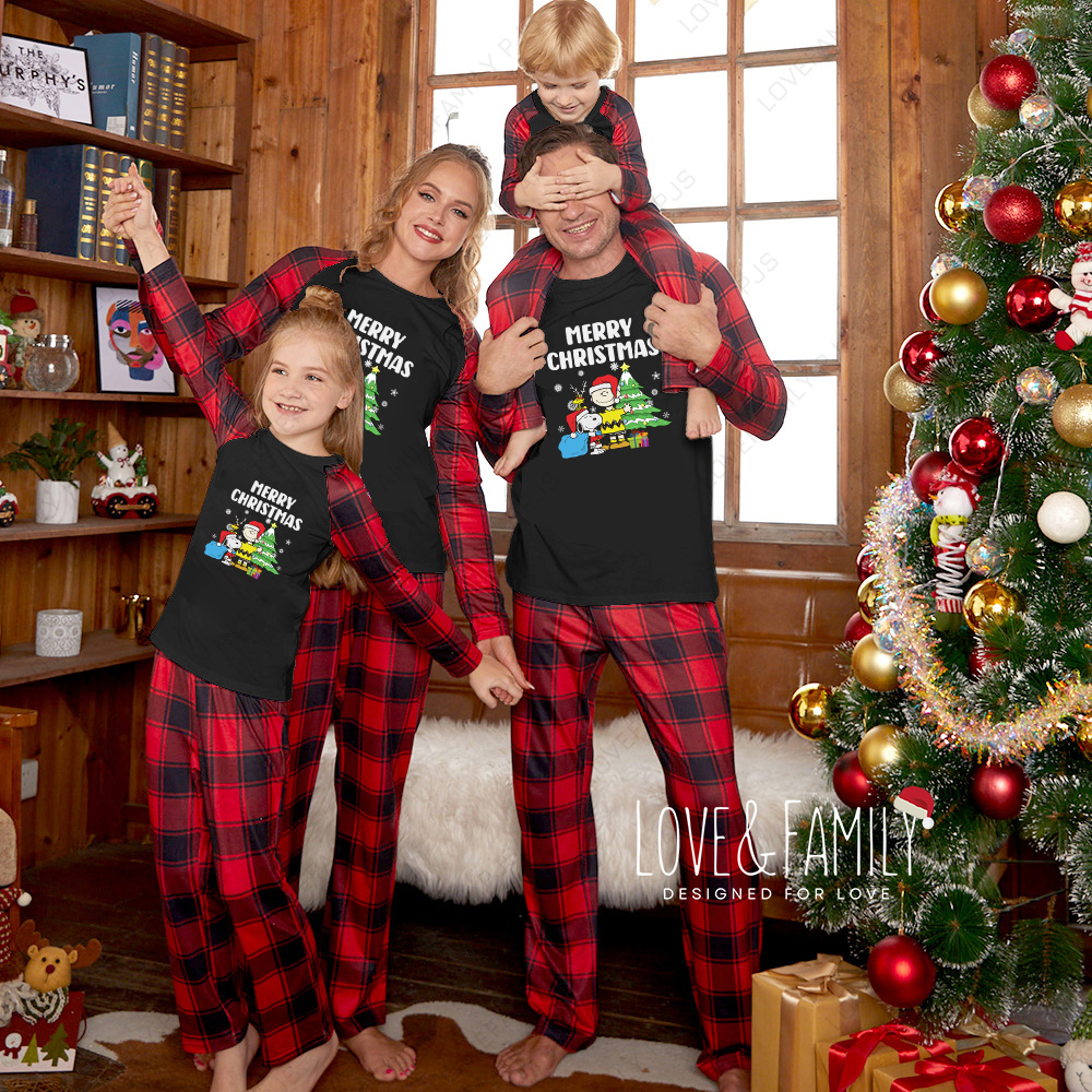 Merry Christmas Peanuts Family Buffalo Plaid Pajamas Sets(Black)