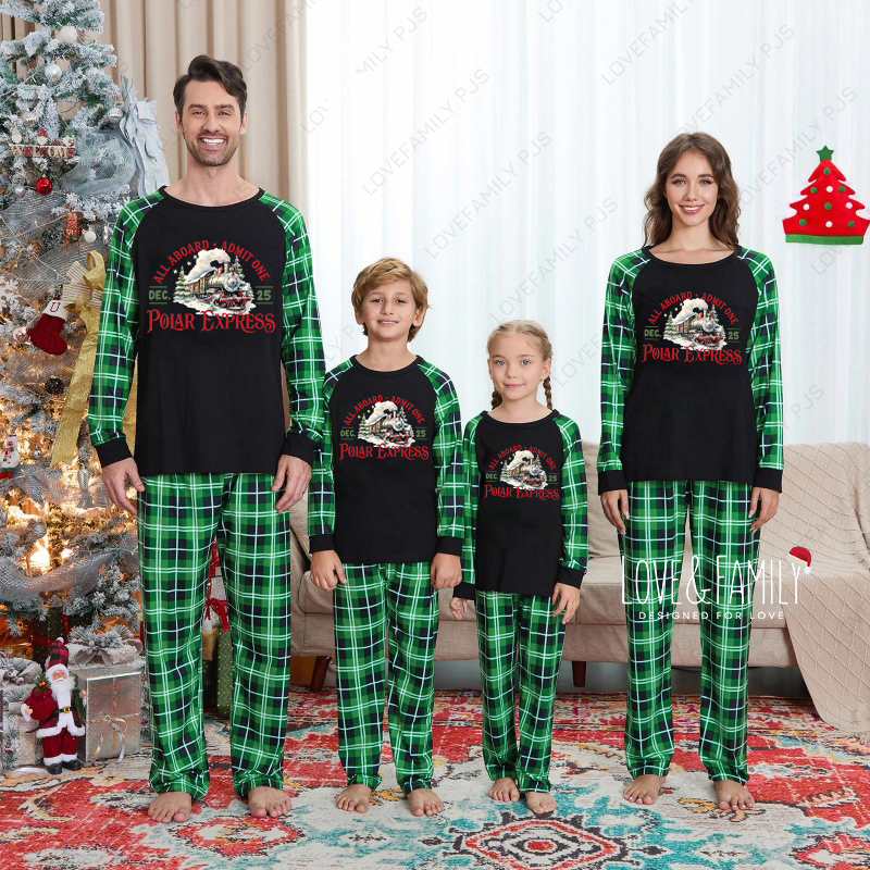 Polar Express Family Christmas Matching Pajamas Green Plaid PJs Sets