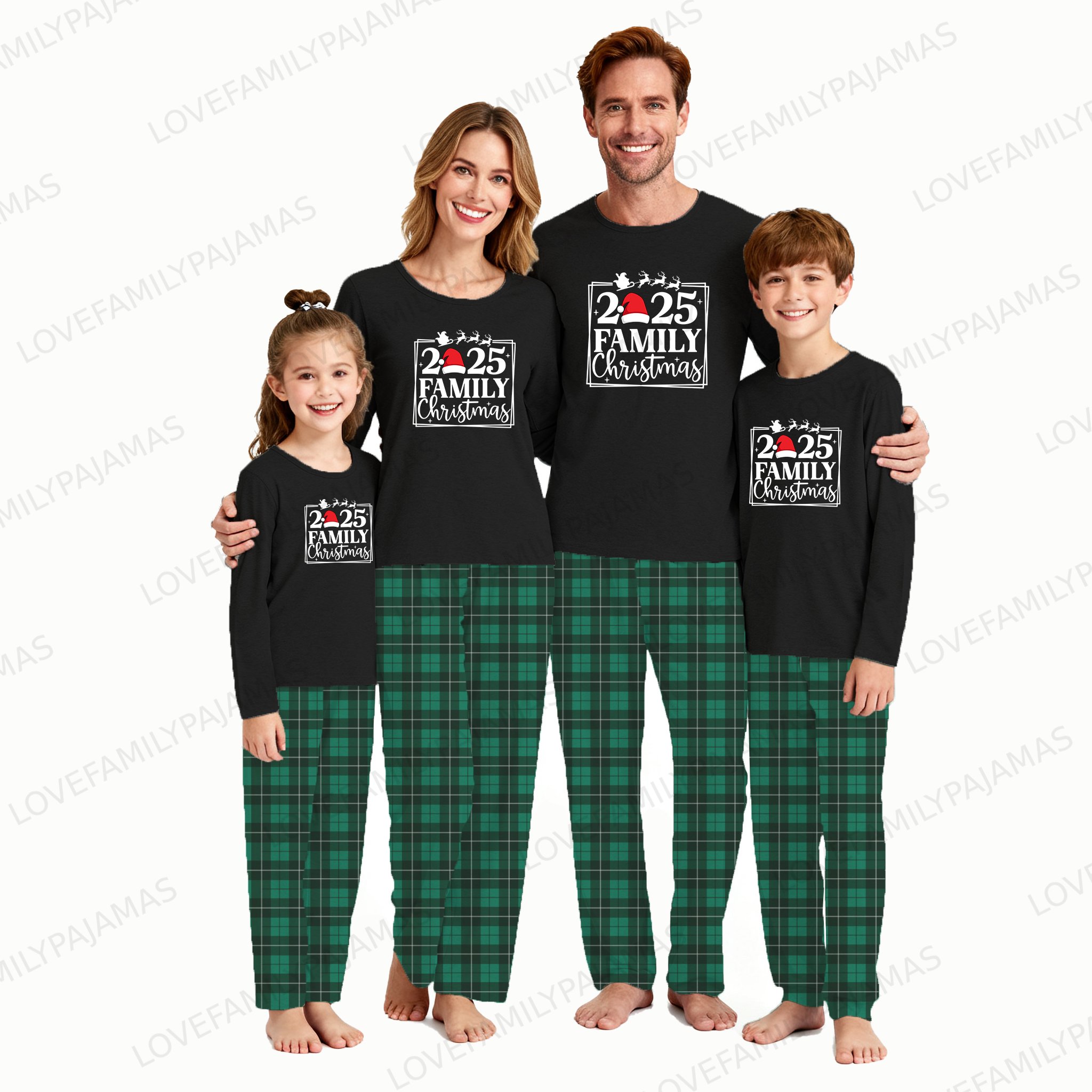 2025 Family Christmas Matching Pajamas Green Plaid Pants with Pockets