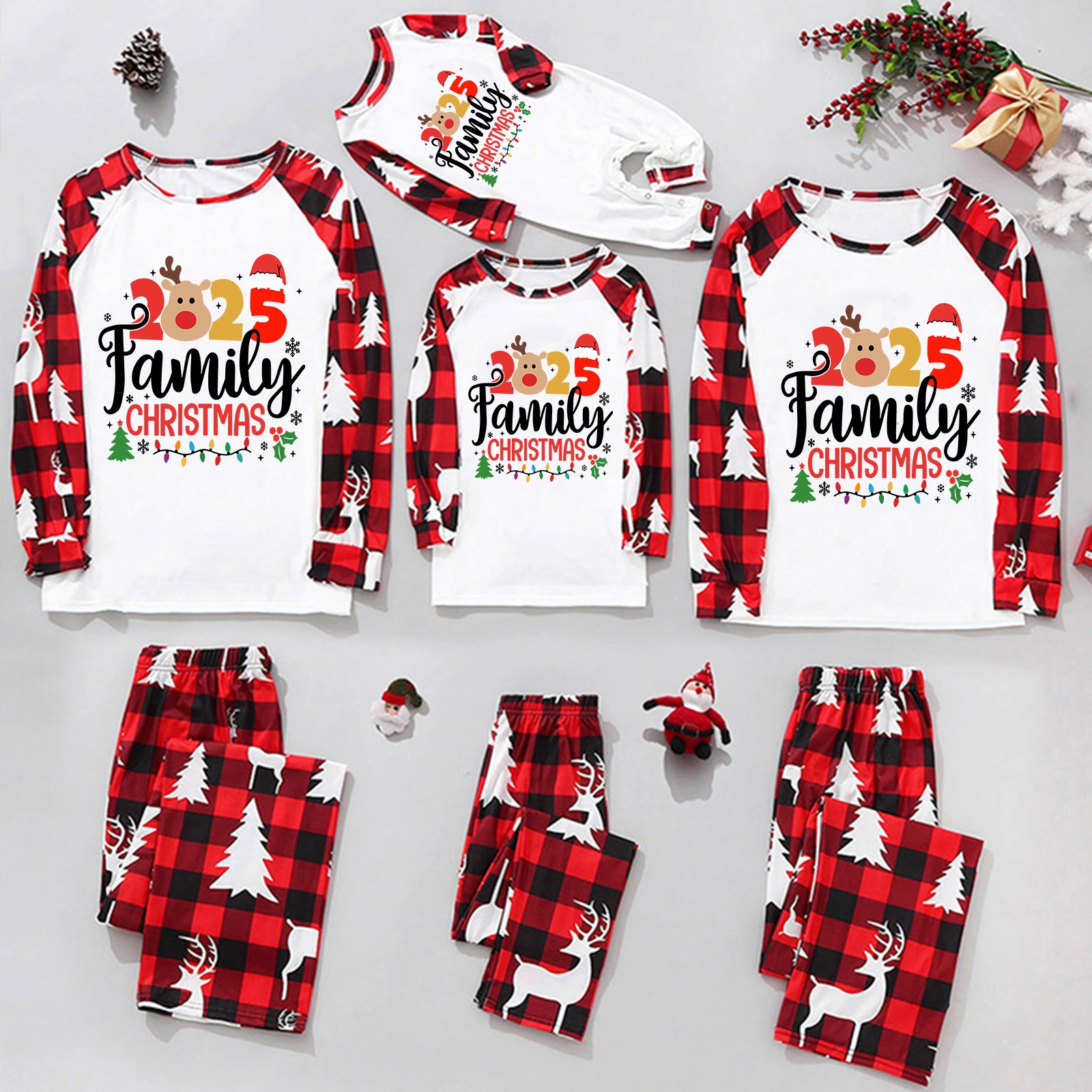 2025 Family Christmas Matching PJs Set Reindeer Xmas Family Pajamas(White)