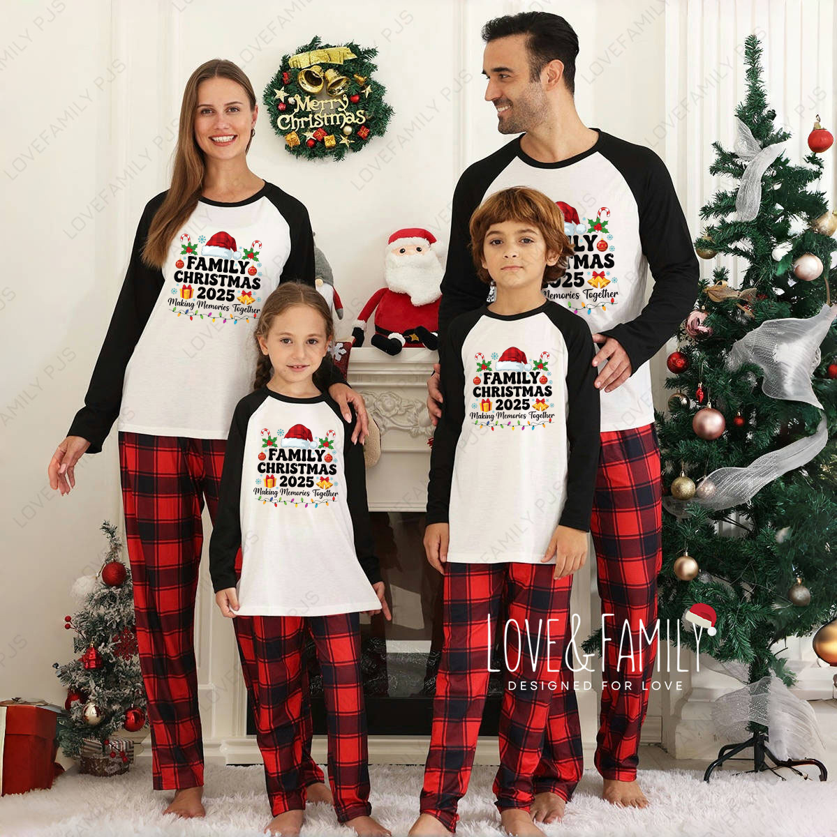 2025 Xmas Element Print Red Plaid Pants Matching Pajama Sets