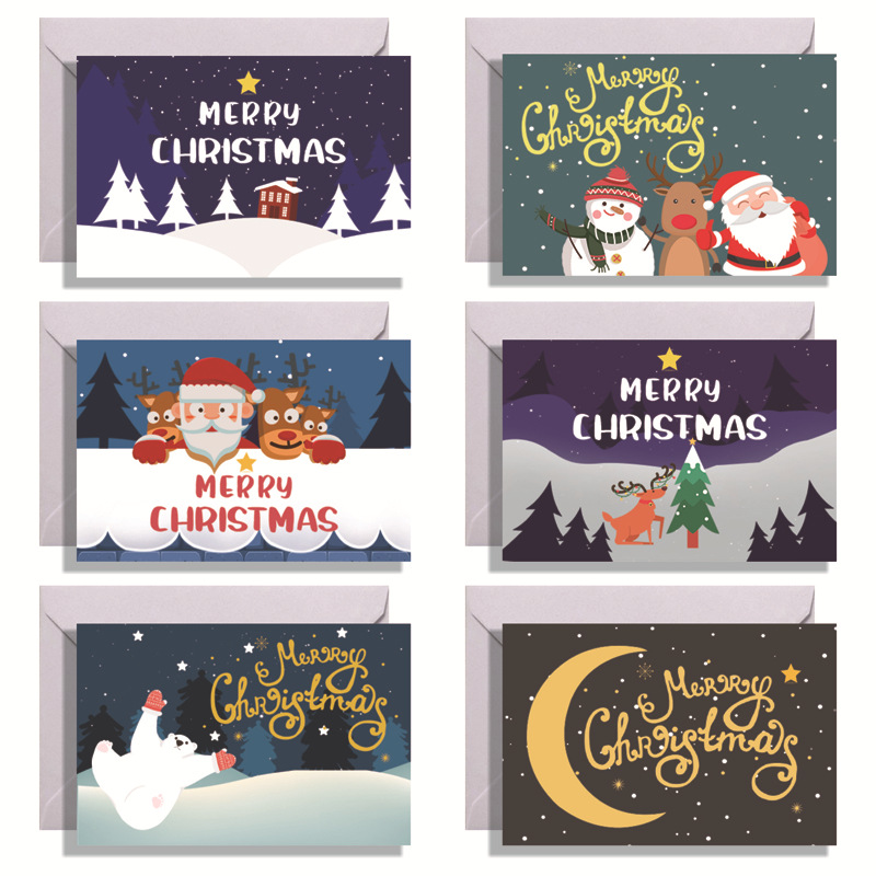 6 PCS Christmas Cards Set with Envelopes | Night Series
