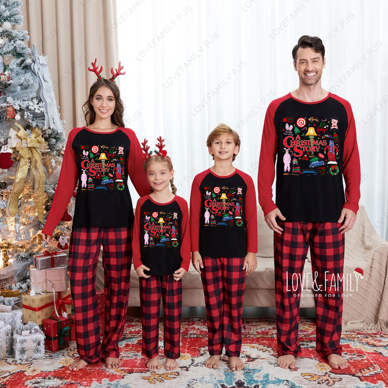 A Christmas Story Family Matching Red Black Plaid Pajamas Sets
