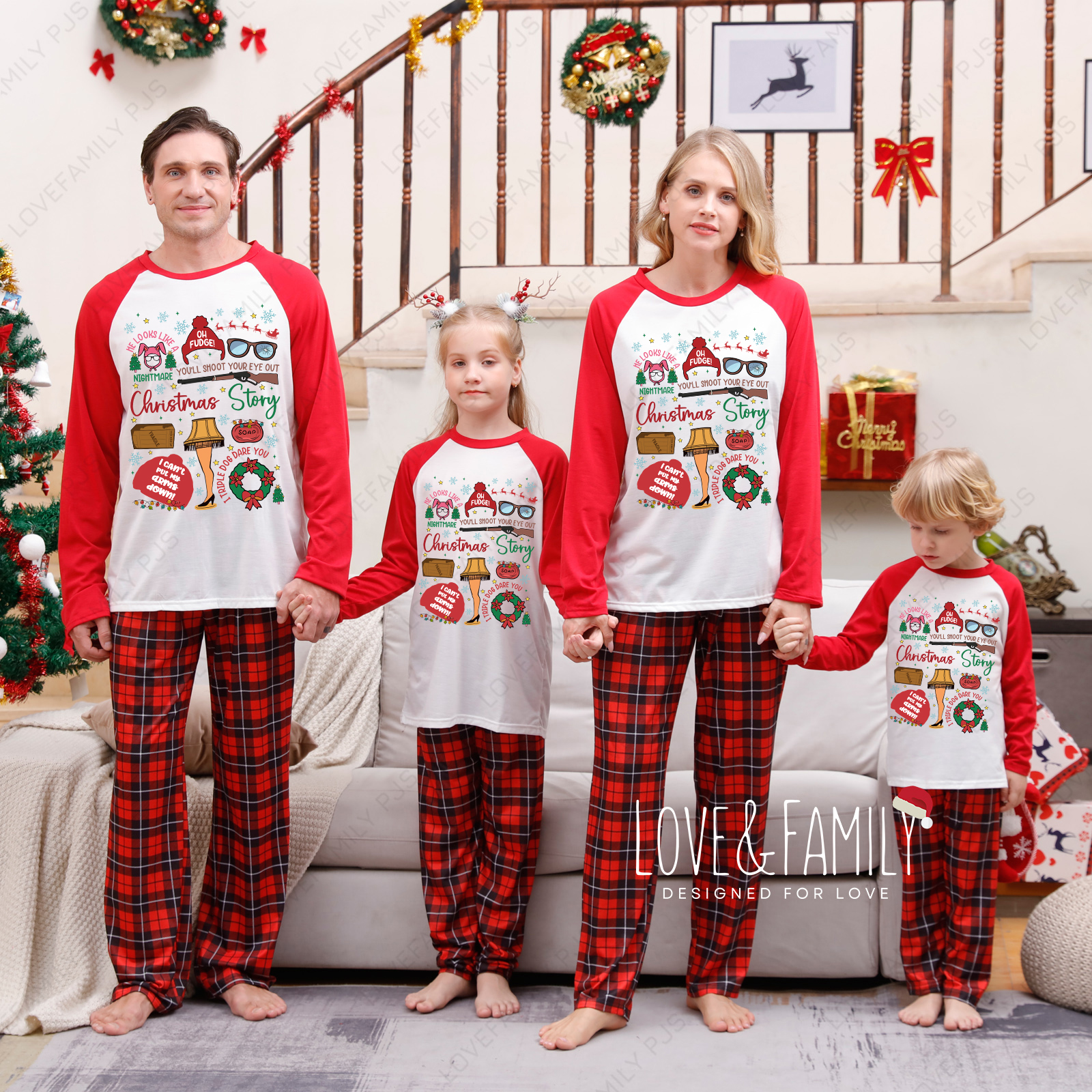 A Christmas Story Matching Family Pajamas Red Plaid PJs Sets