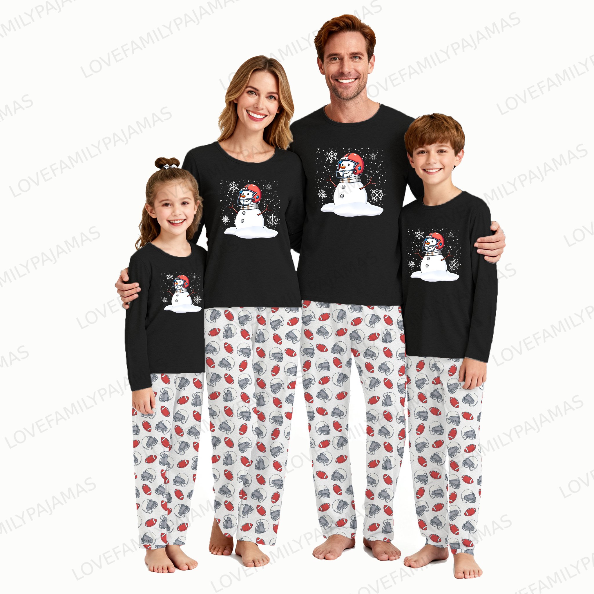American Football Family Pajamas Snowman PJs Sets with Pockets