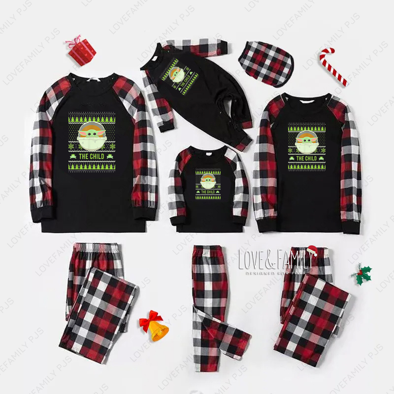 Baby Yoda Christmas Family Matching Pajamas Black Plaid PJs Sets