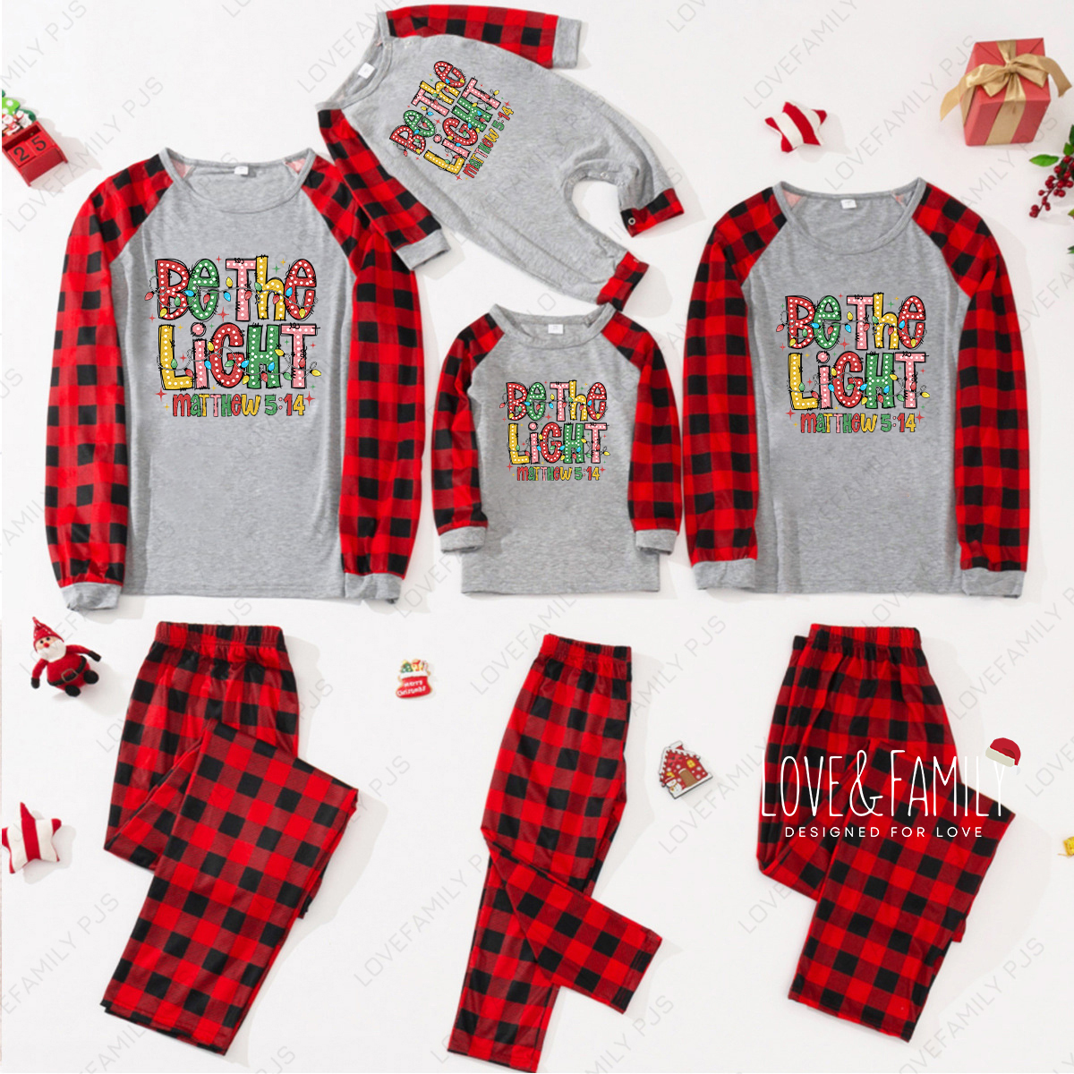 Be The Light Nativity Buffalo Plaid Matching Pajamas(Gray)