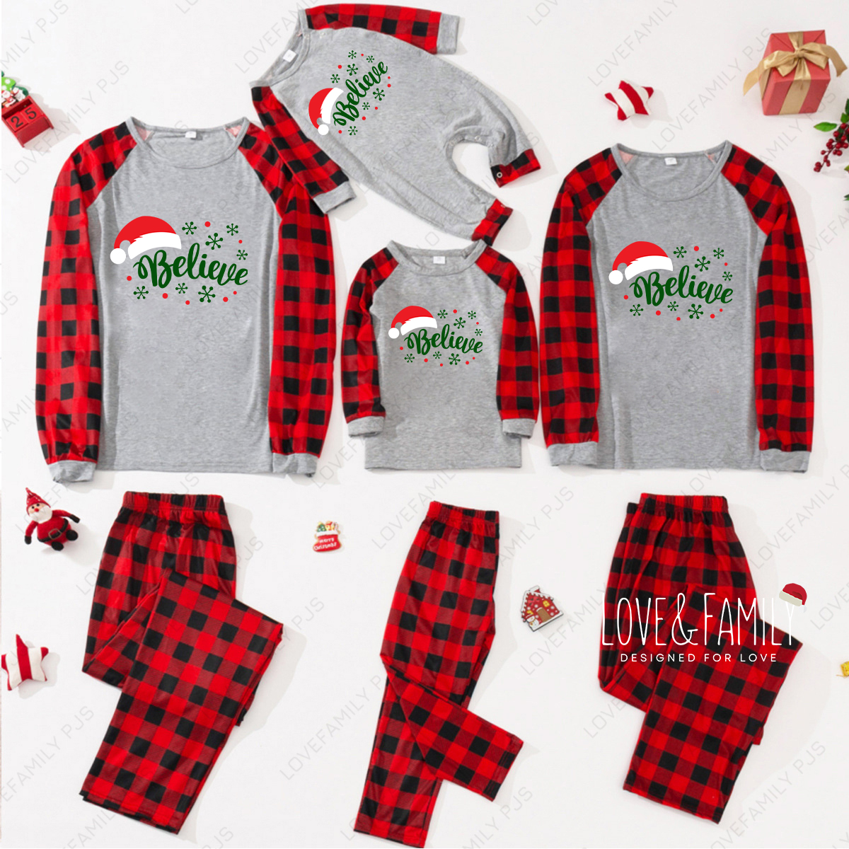 Believe Christmas Family Matching Pajamas Buffalo Plaid PJs Sets(Gray)