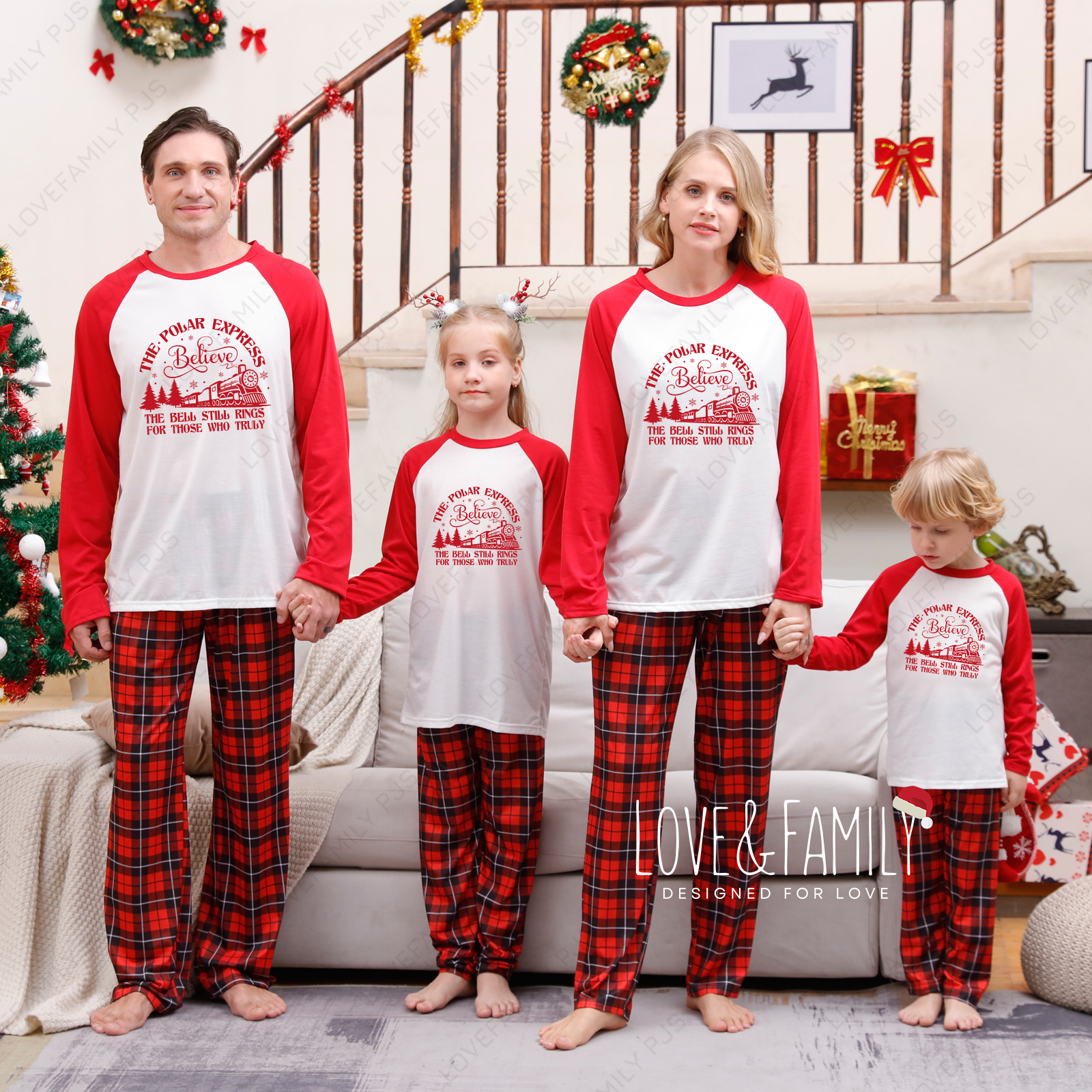 Believe The Polar Express Christmas Family Red Plaid Pajamas Sets