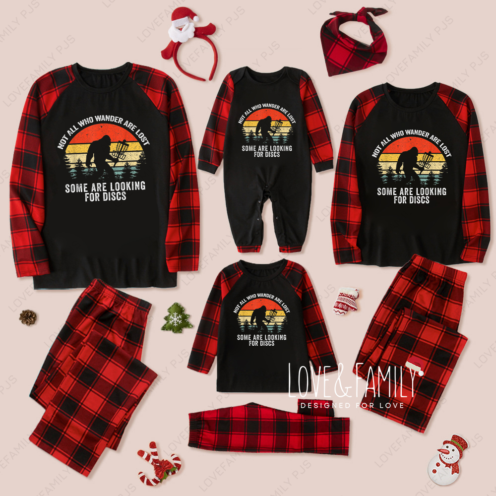 BigFoot Christmas Family Matching Pajamas Buffalo Plaid PJs Sets(Black)