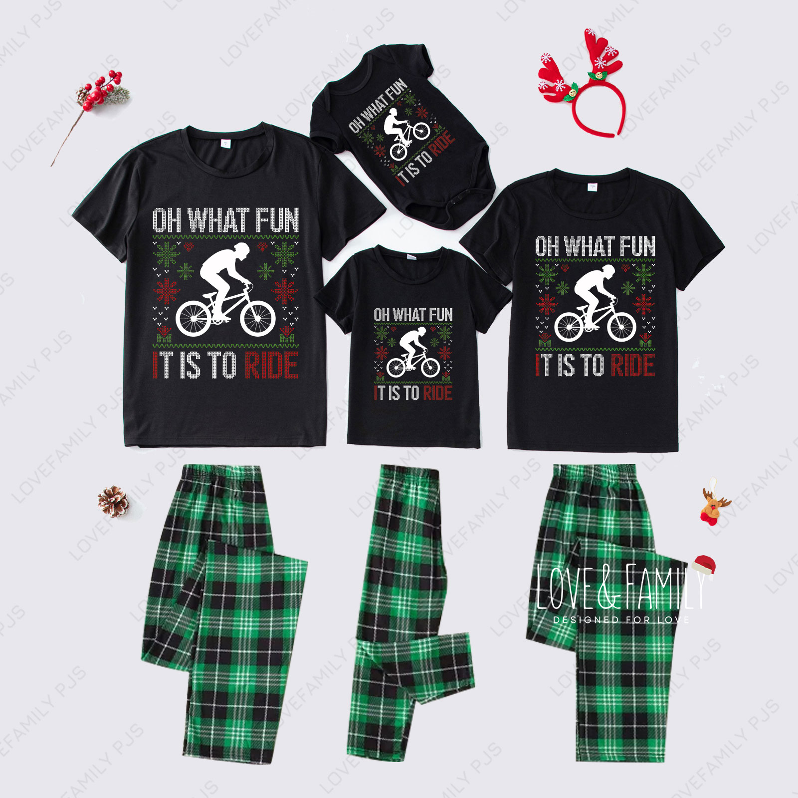 Bike-Riding Cool Christmas Family Matching Pajamas Short-Sleeve PJs Sets