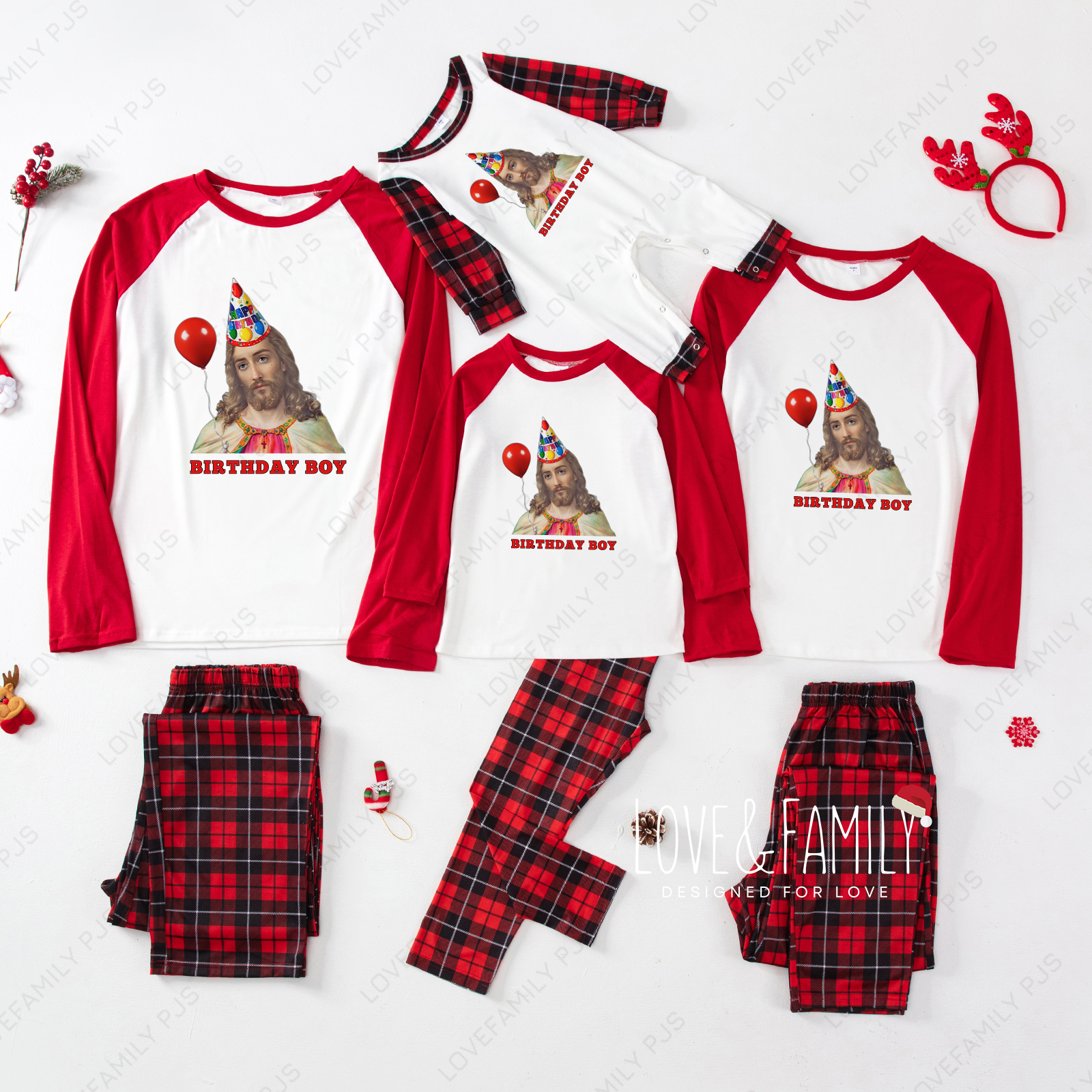 Birthday Boy Jesus Christmas Red Plaid Matching Pajamas Sets