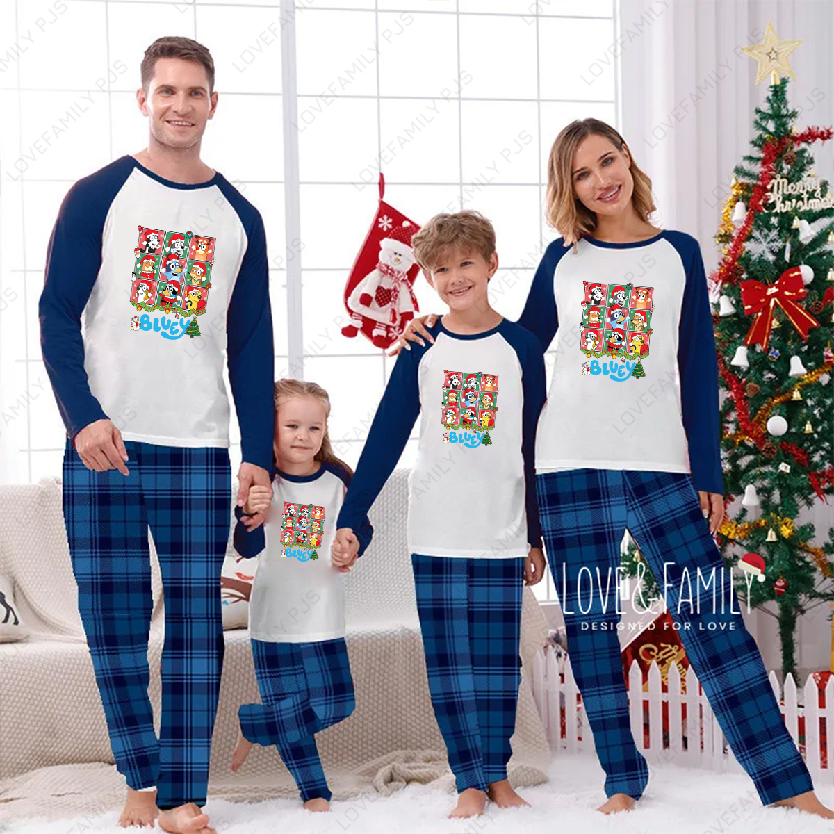 Bluey Christmas Blue Plaid Family Matching Pajamas Set