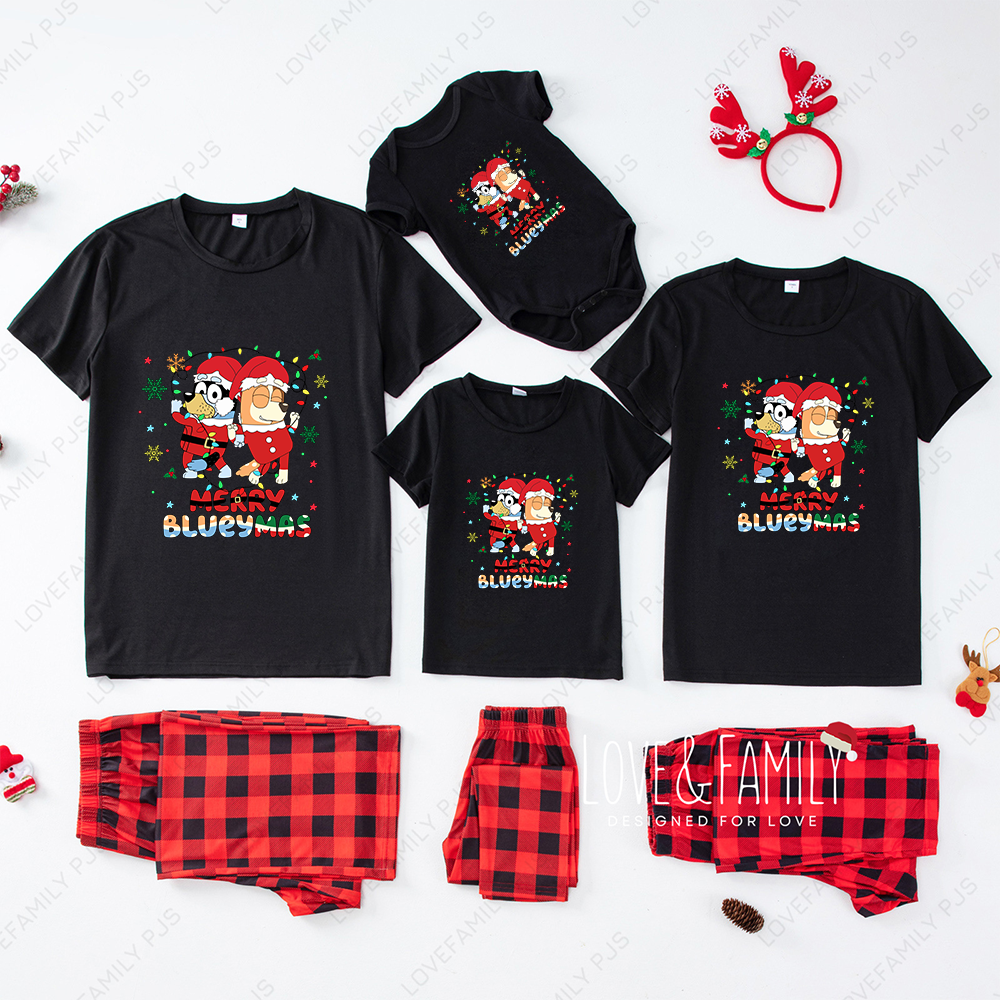 Bluey Merry Christmas Family Short Sleeve Pajamas Set