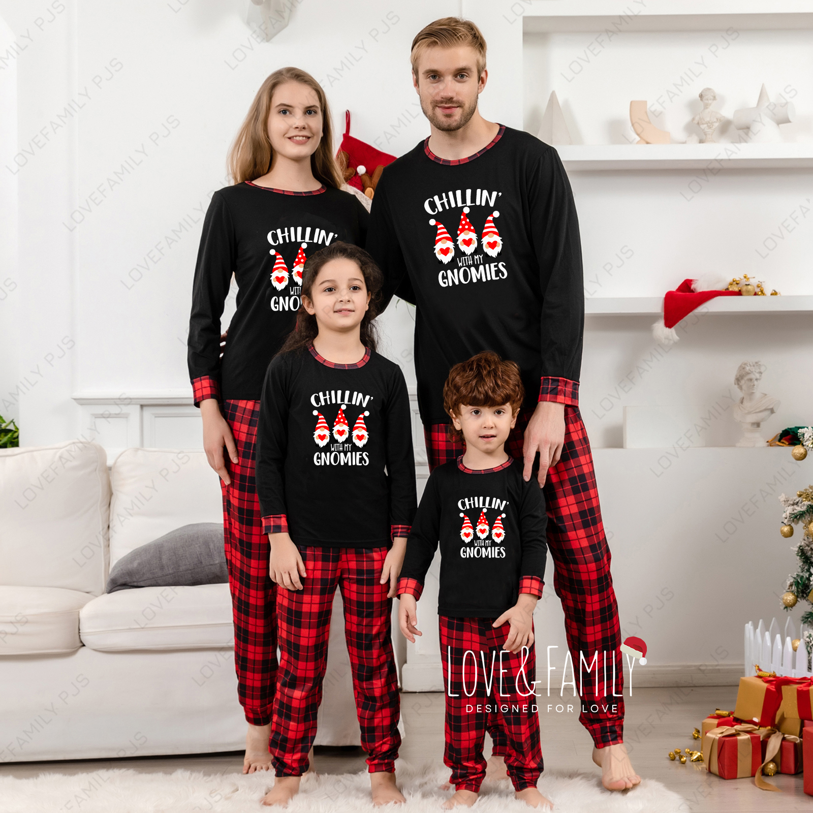 Chillin' With My Gnomies Christmas Family Matching Pajamas Sets(Black)