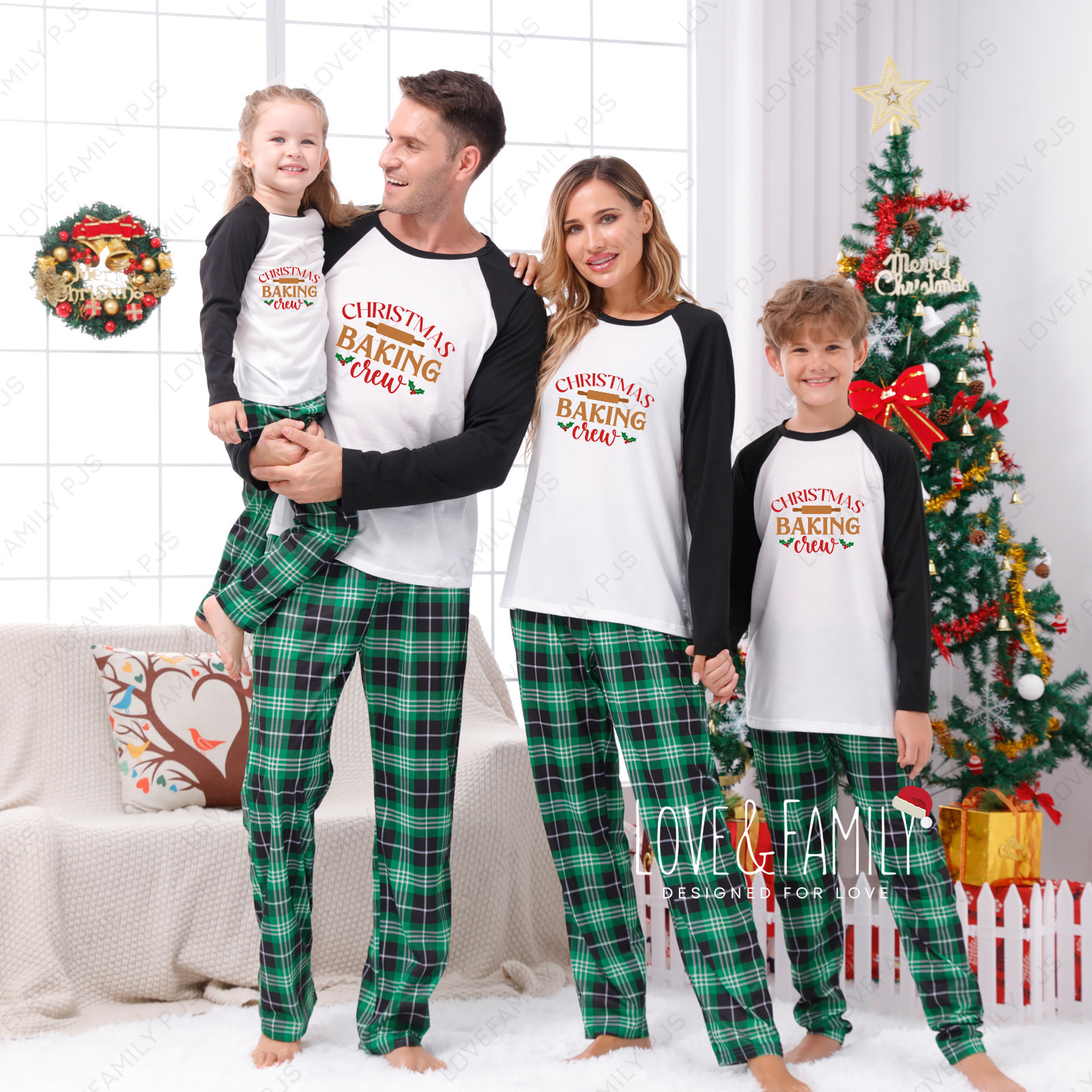 Christmas Baking Crew Family Matching Green Plaid Pajamas Sets