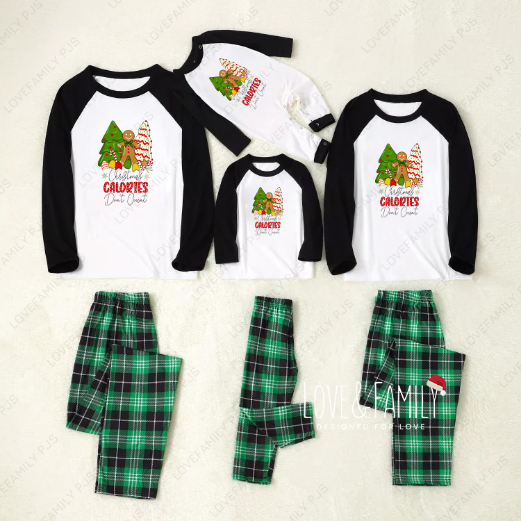 Christmas Calories Don't Count Family Matching Green Plaid Pajamas Sets
