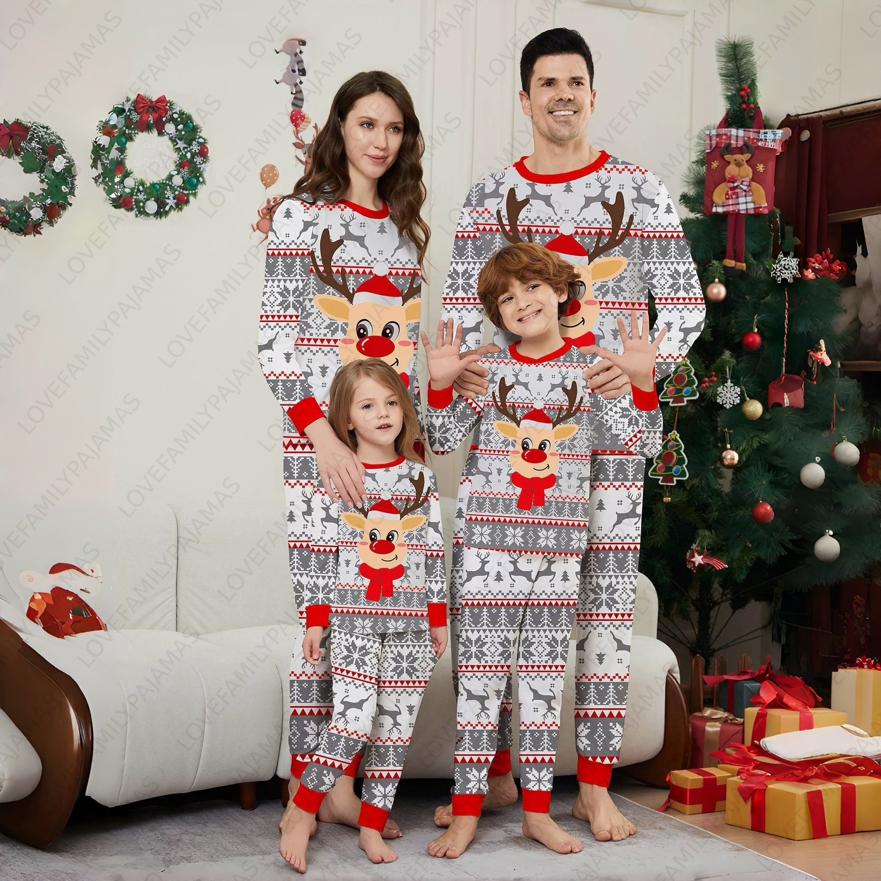 Christmas Cute Reindeer Print Family Pajamas Rudolph Holiday Jammies