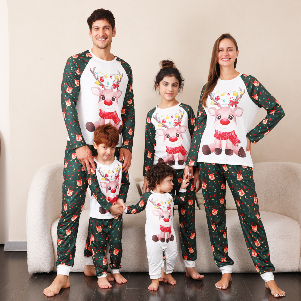 Christmas Deer Print Cartoon Print Family Matching Pajamas Set(Green)