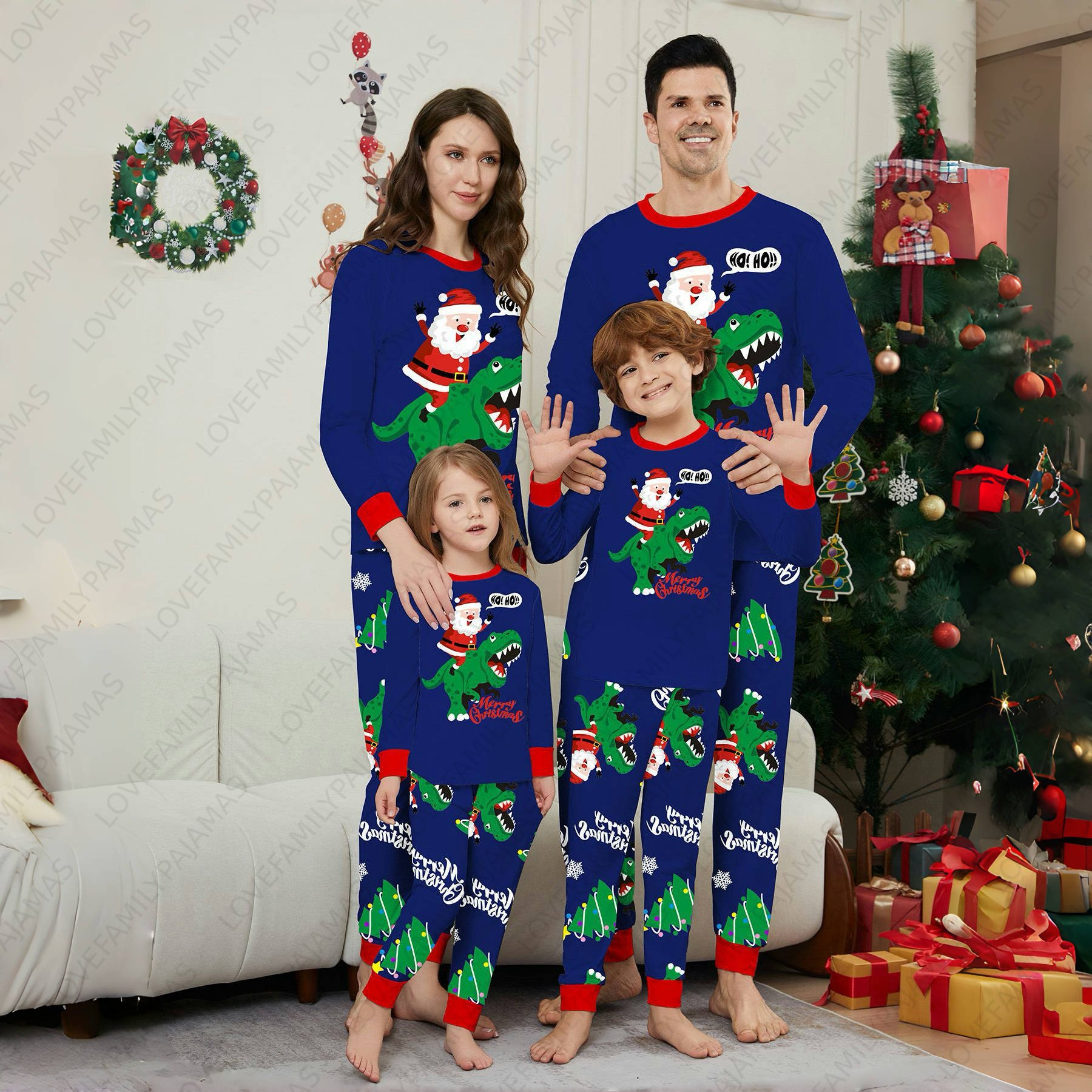 Christmas Dinosaur Blue Print Family Holiday Loungewear Set