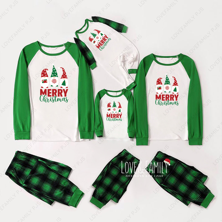 Christmas Family Matching Pajamas Gnome Green Plaid PJs Sets