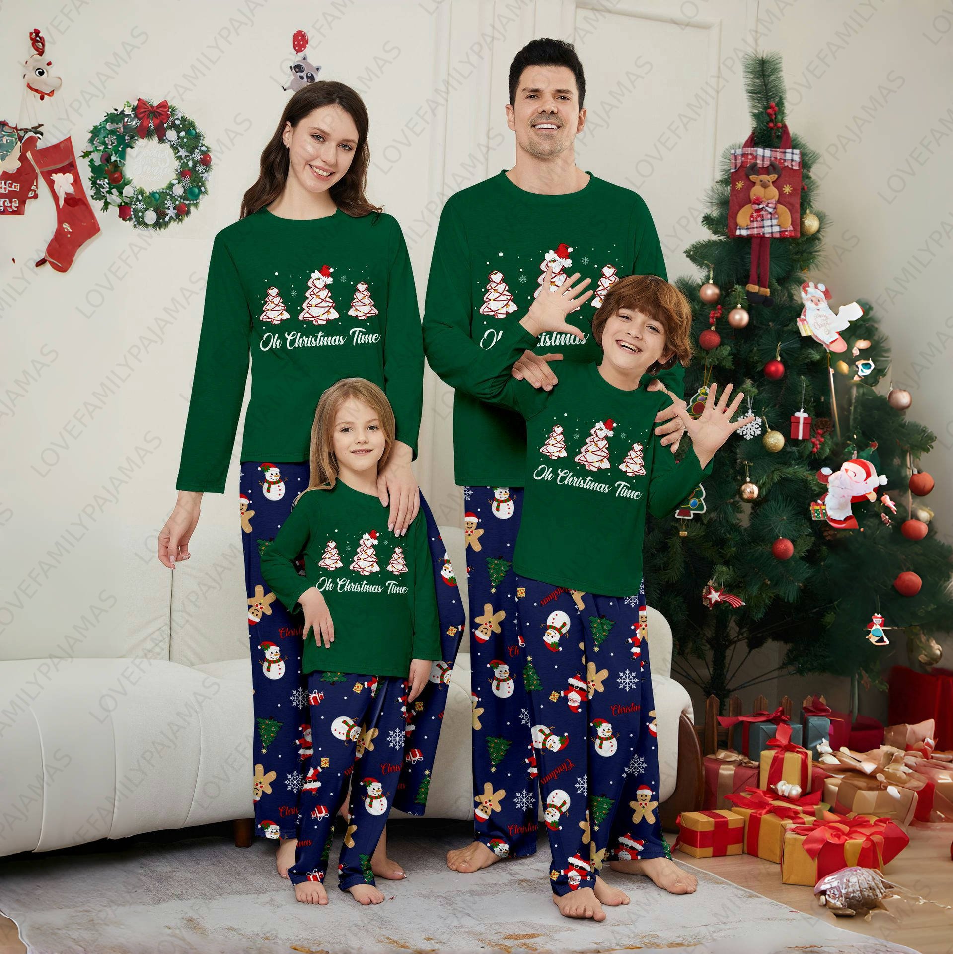 Christmas Family Matching Pajamas Sets 'Oh Christmas Time' Nightwear PJs