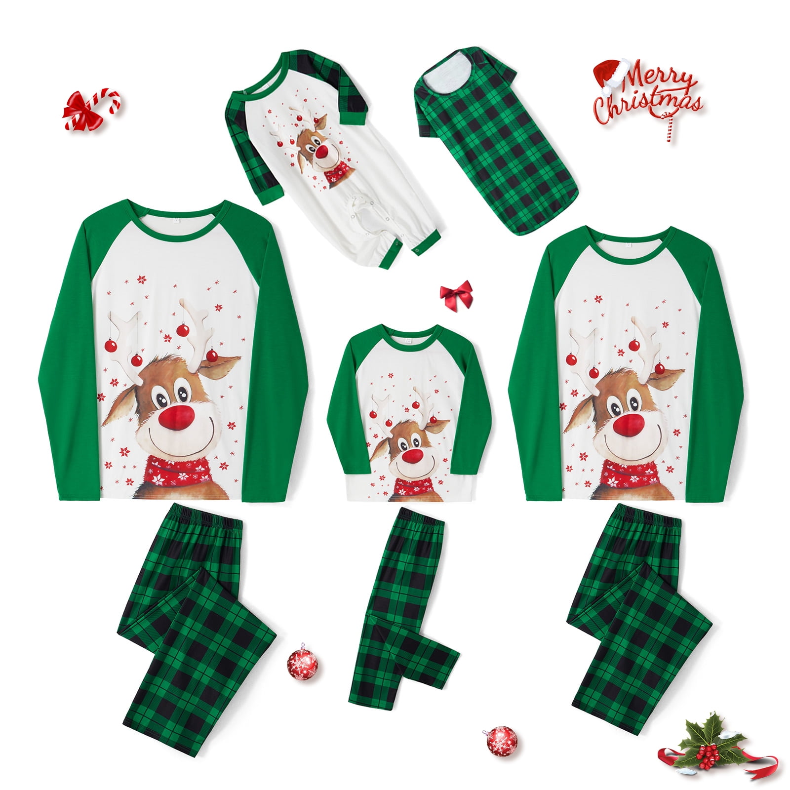 Christmas Family Matching Reindeer Green Plaid Pajamas Set