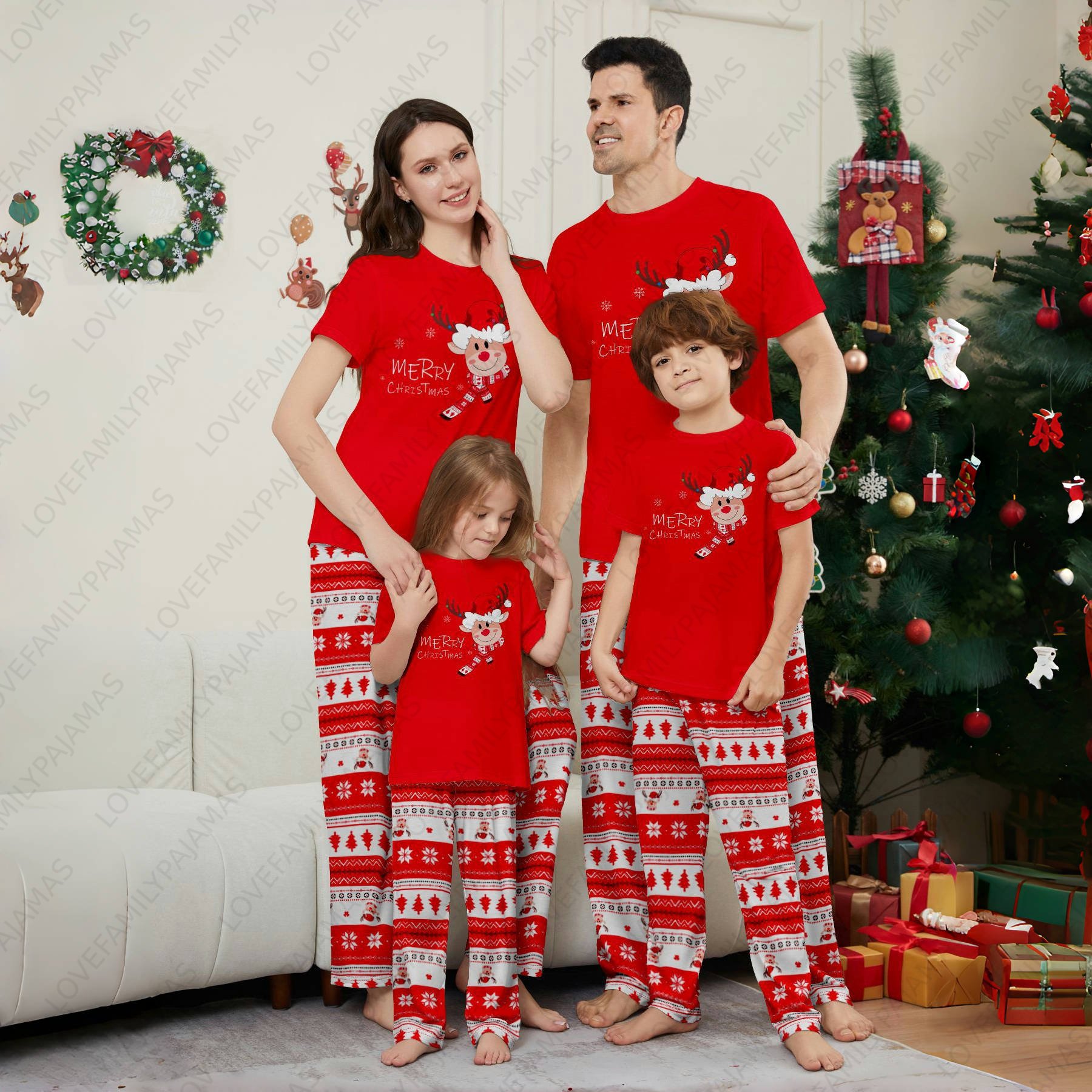 Christmas Family Matching Reindeers Print Short-sleeve Pajamas Sets