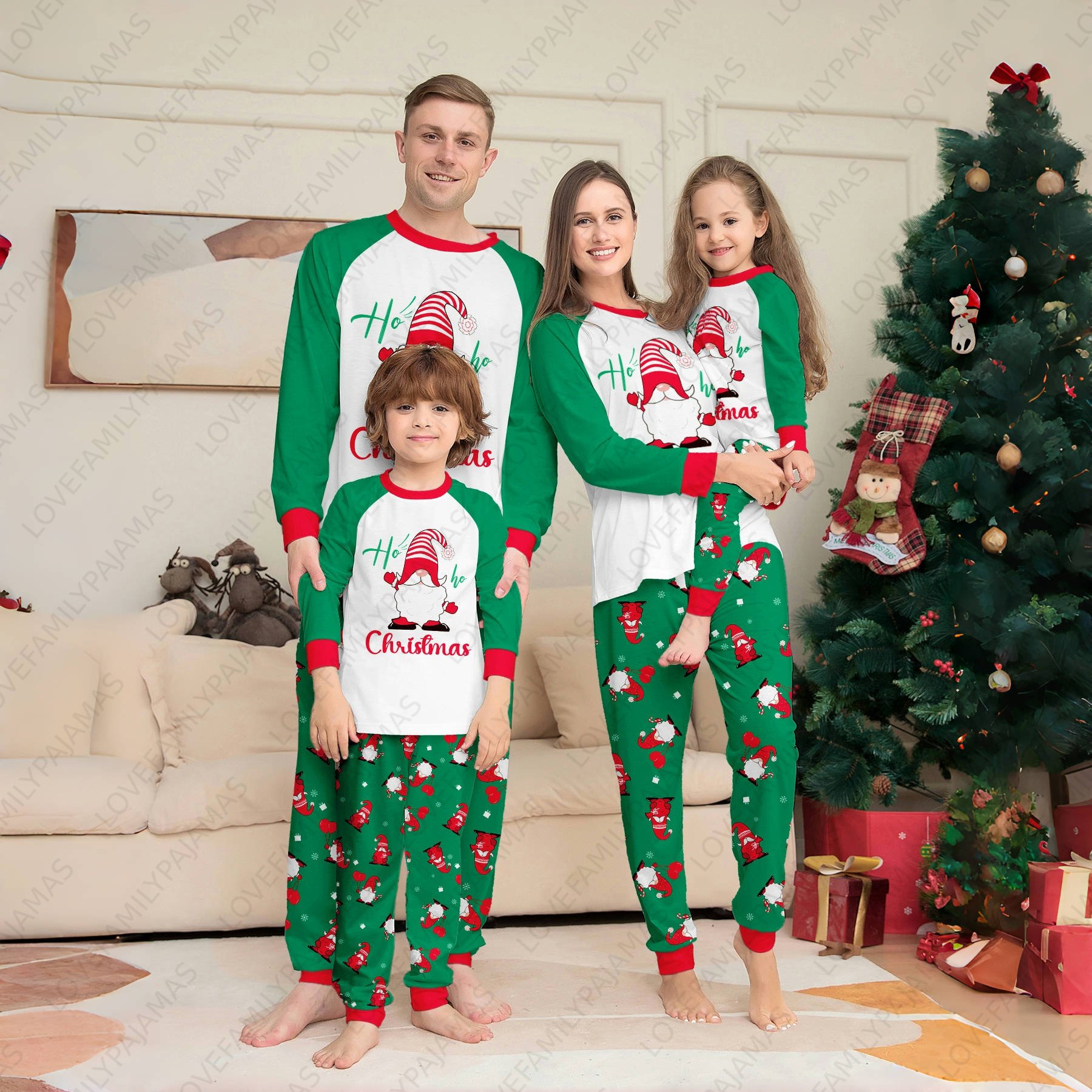 Christmas Family Matching Gnomes Pattern Long Sleeves Pajamas Sets