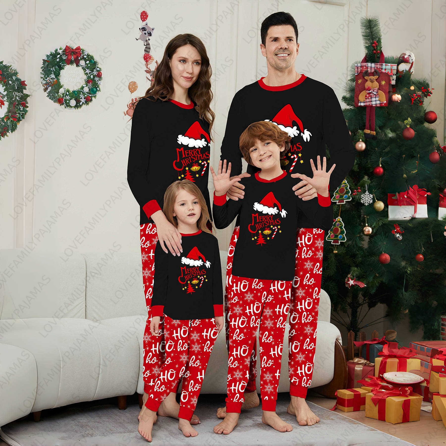 Christmas Family Raglan Sleeves Christmas Hat Print Pajamas Sets