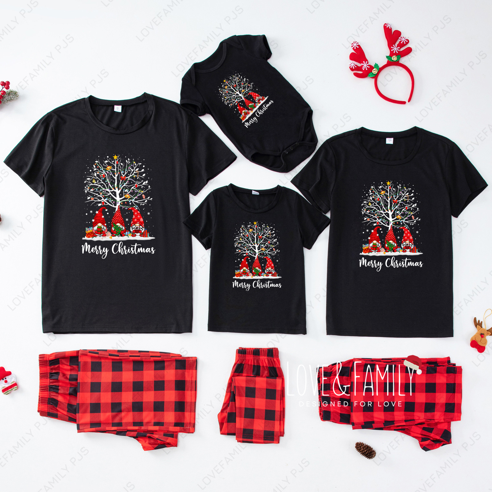 Christmas Gnomes Cartoon Print Family Short Sleeve Pajamas Sets