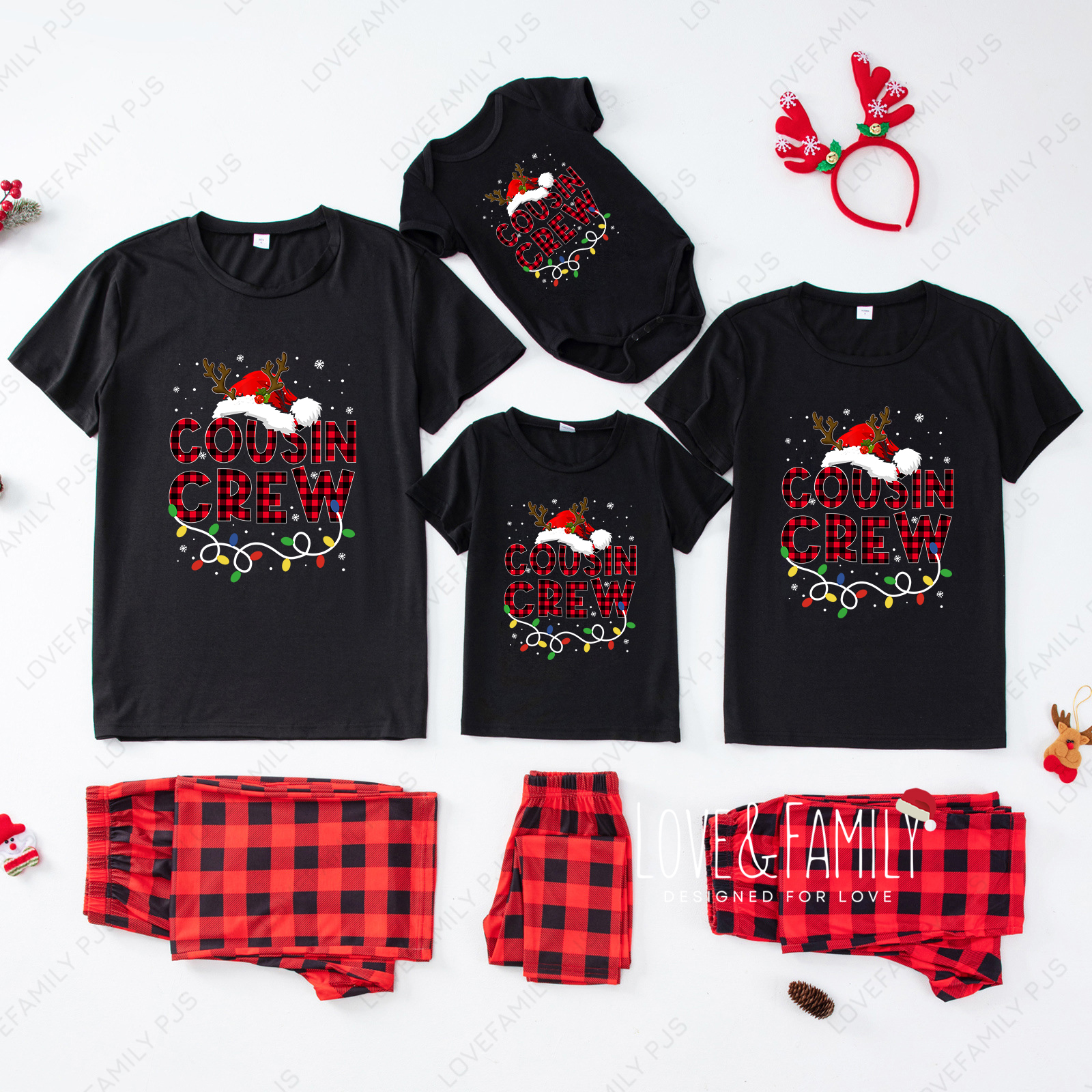 Christmas Hat Consin Crew Print Family Matching Short Sleeve Pajamas Set