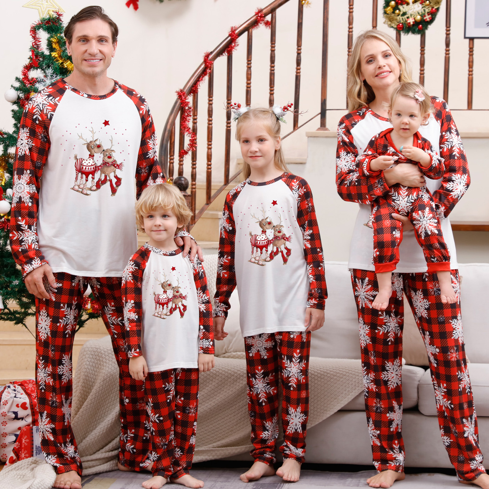 Christmas Moose with Scarf Cartoon Printing Family Matching Pajamas Sets