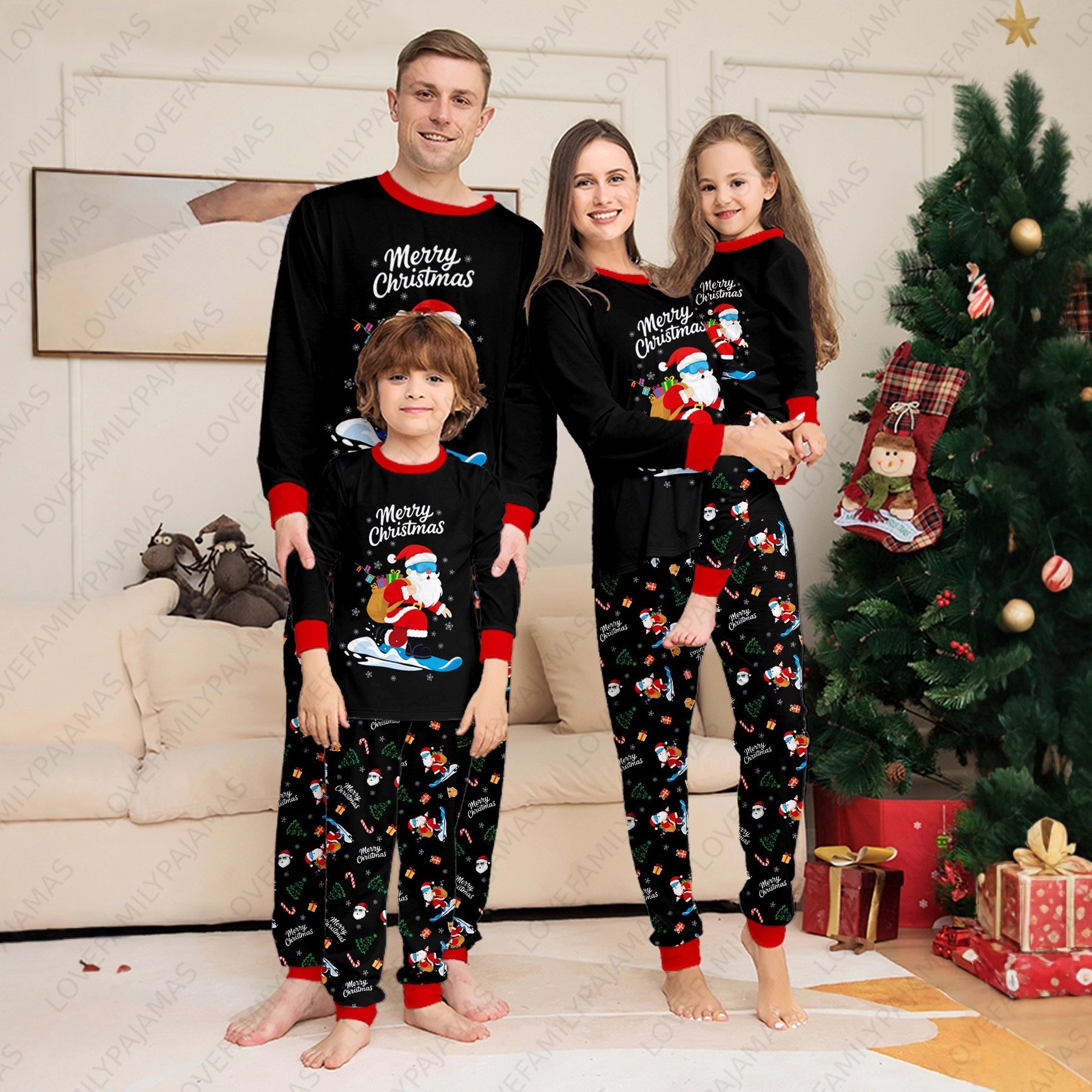 Christmas Santa Print Family Pajamas Cool Black Matching PJs Sets