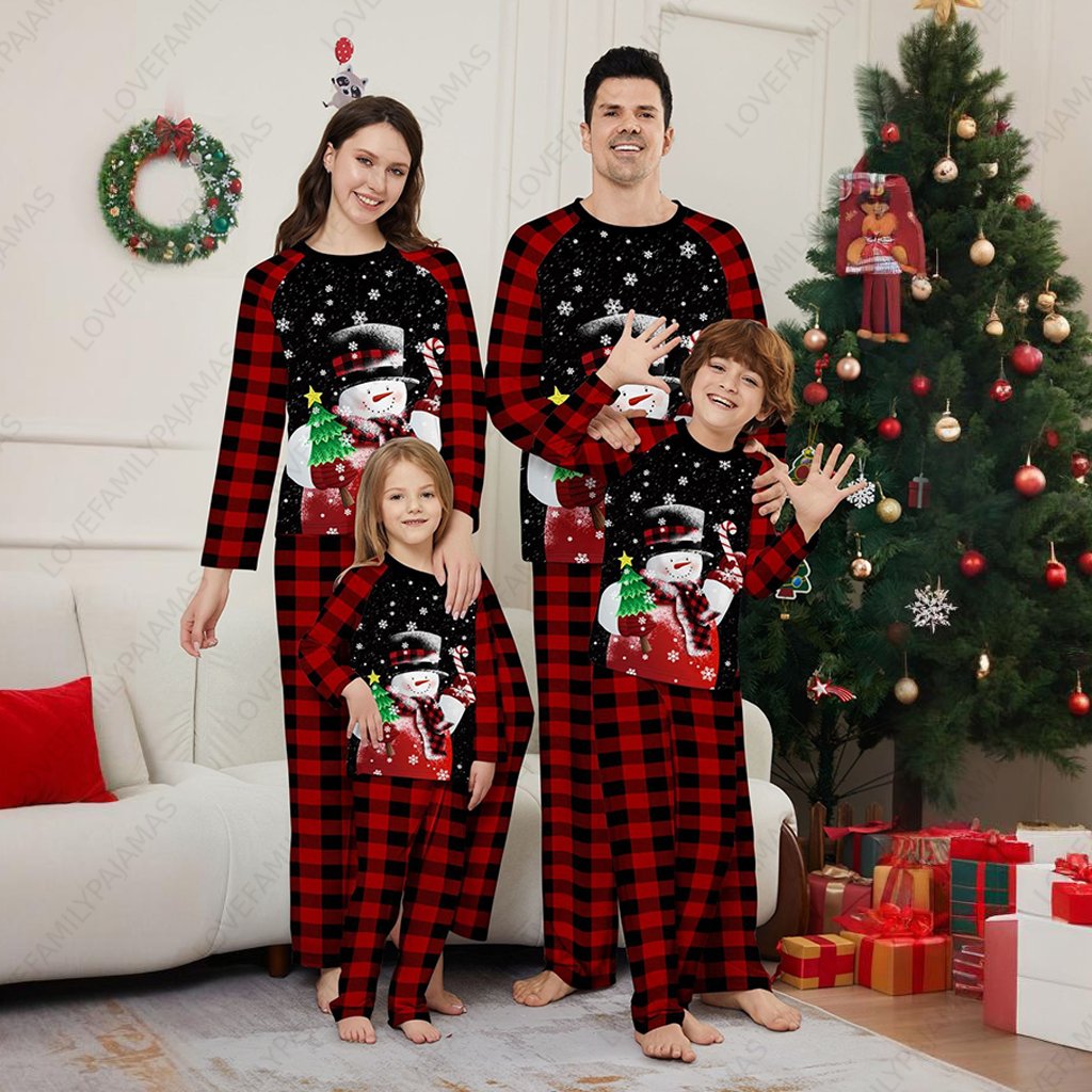 Christmas Snow Family Pajamas Snowman Print Holiday Sleepwear Sets