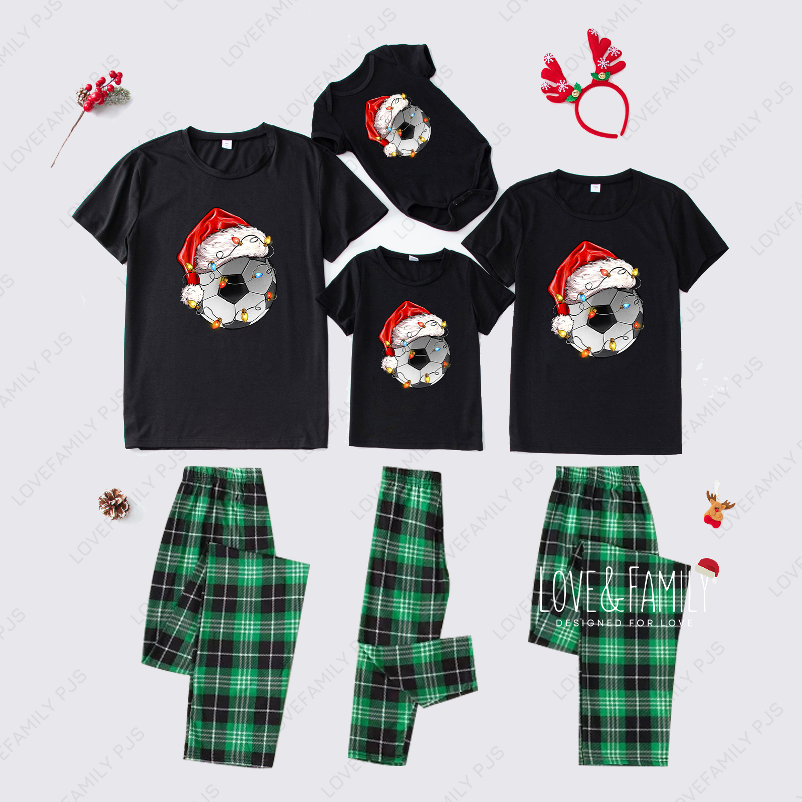 Christmas Soccer Ball Family Matching Pajamas Short Sleeve Green PJs Sets