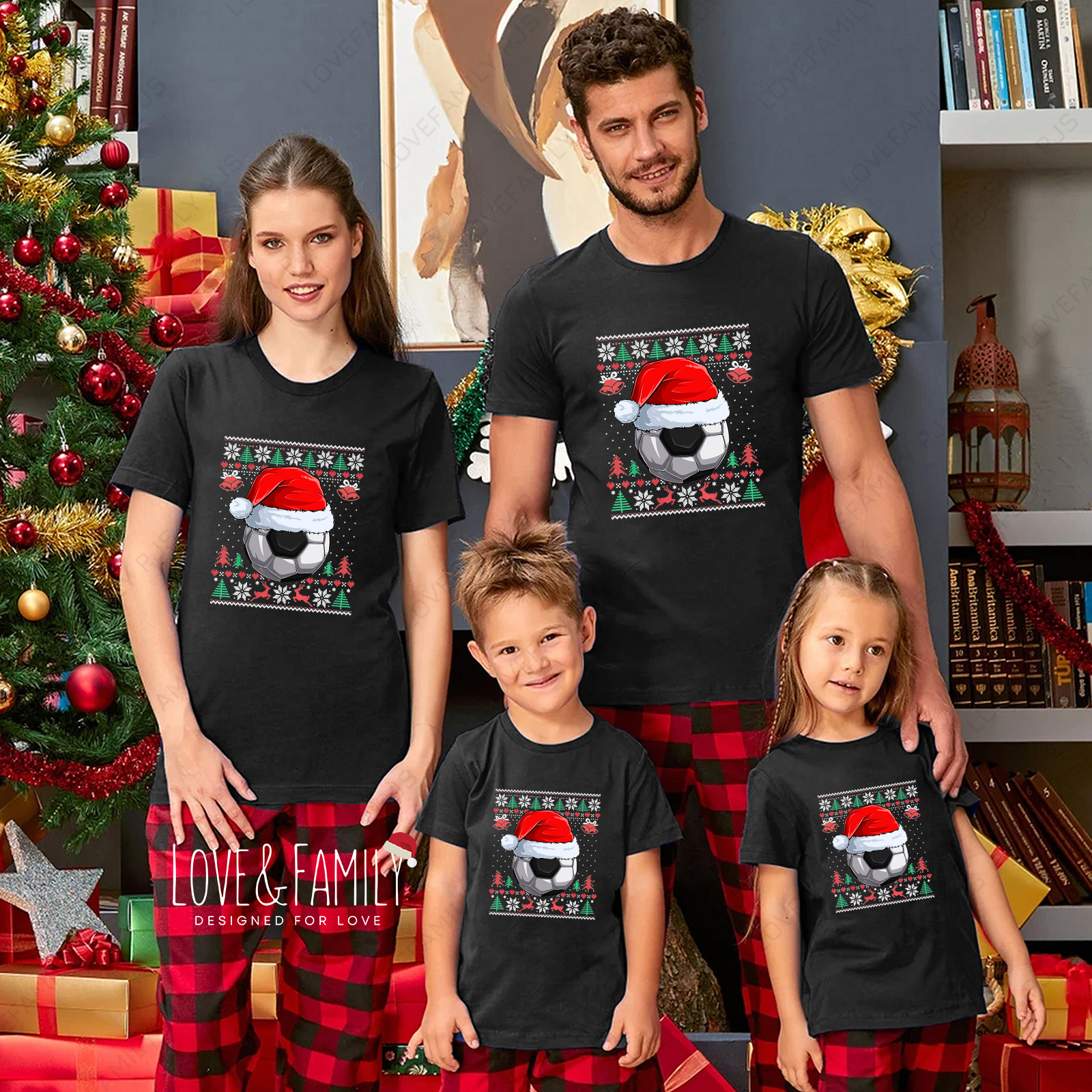 Christmas Soccer Ball Family Matching Pajamas Short Sleeve PJs Sets