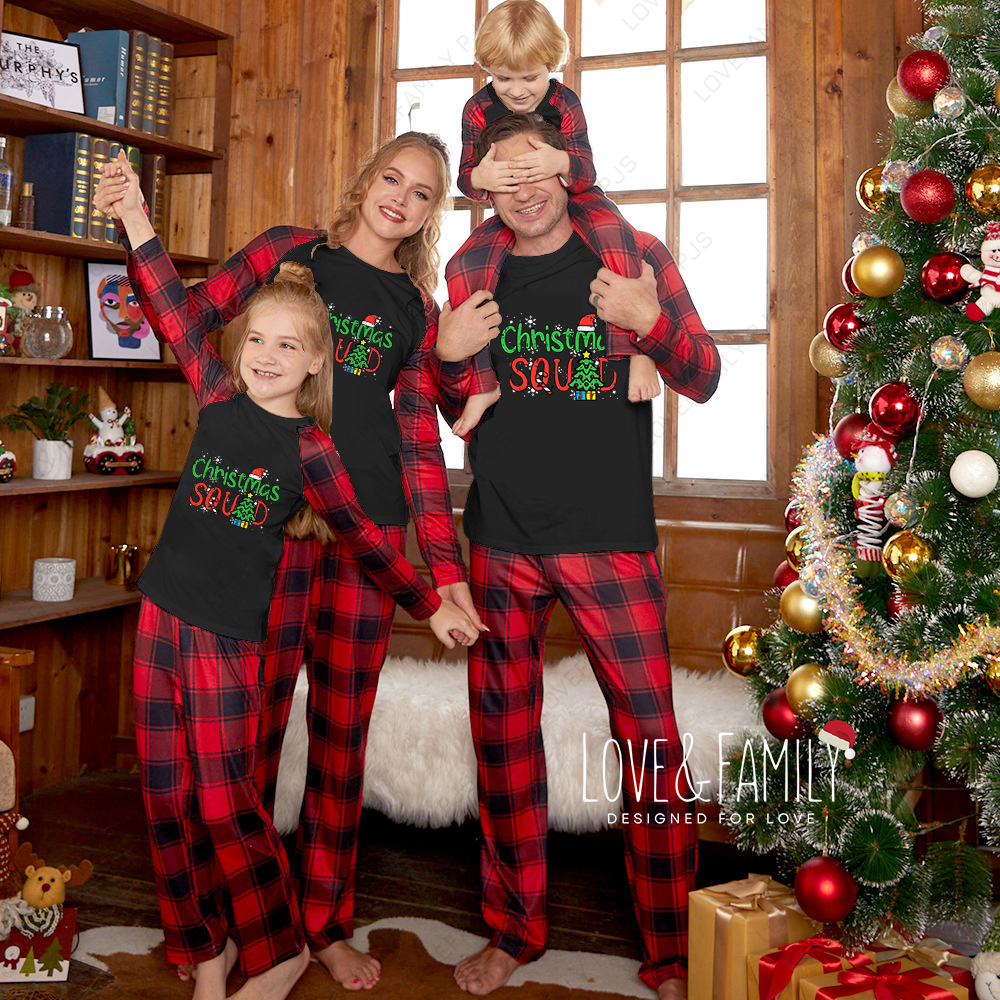 Christmas Squad Family Pajamas Red Plaid Splice Nightwear Set