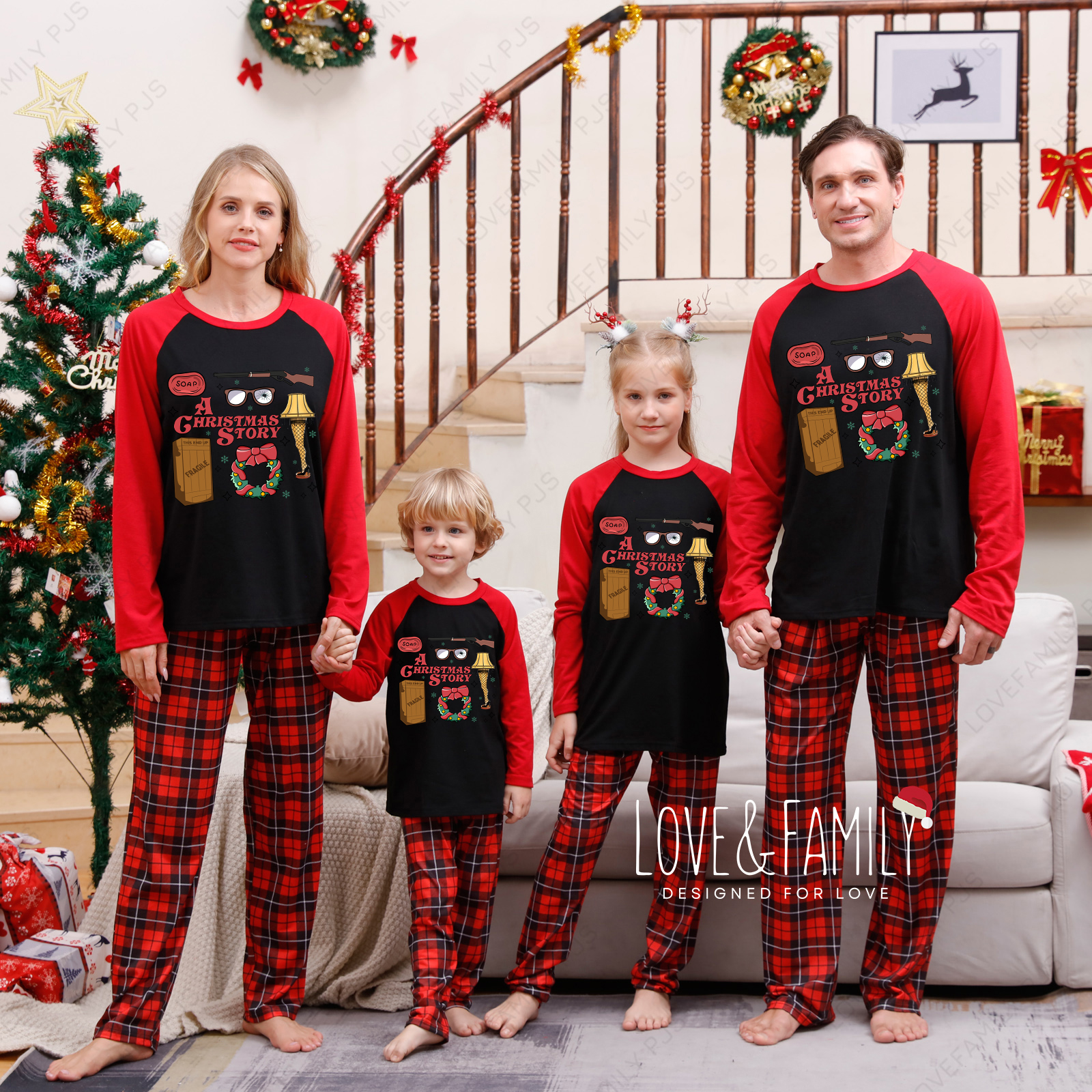 Christmas Story Family Matching Pajamas Red Plaid Sets(Black)