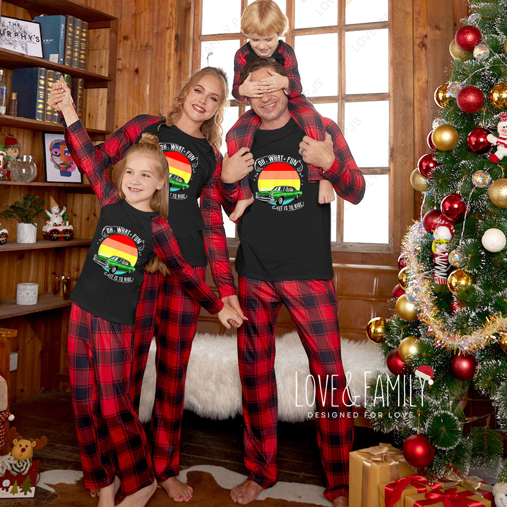 Classic Car Christmas Family Matching Buffalo Plaid Pajamas Sets