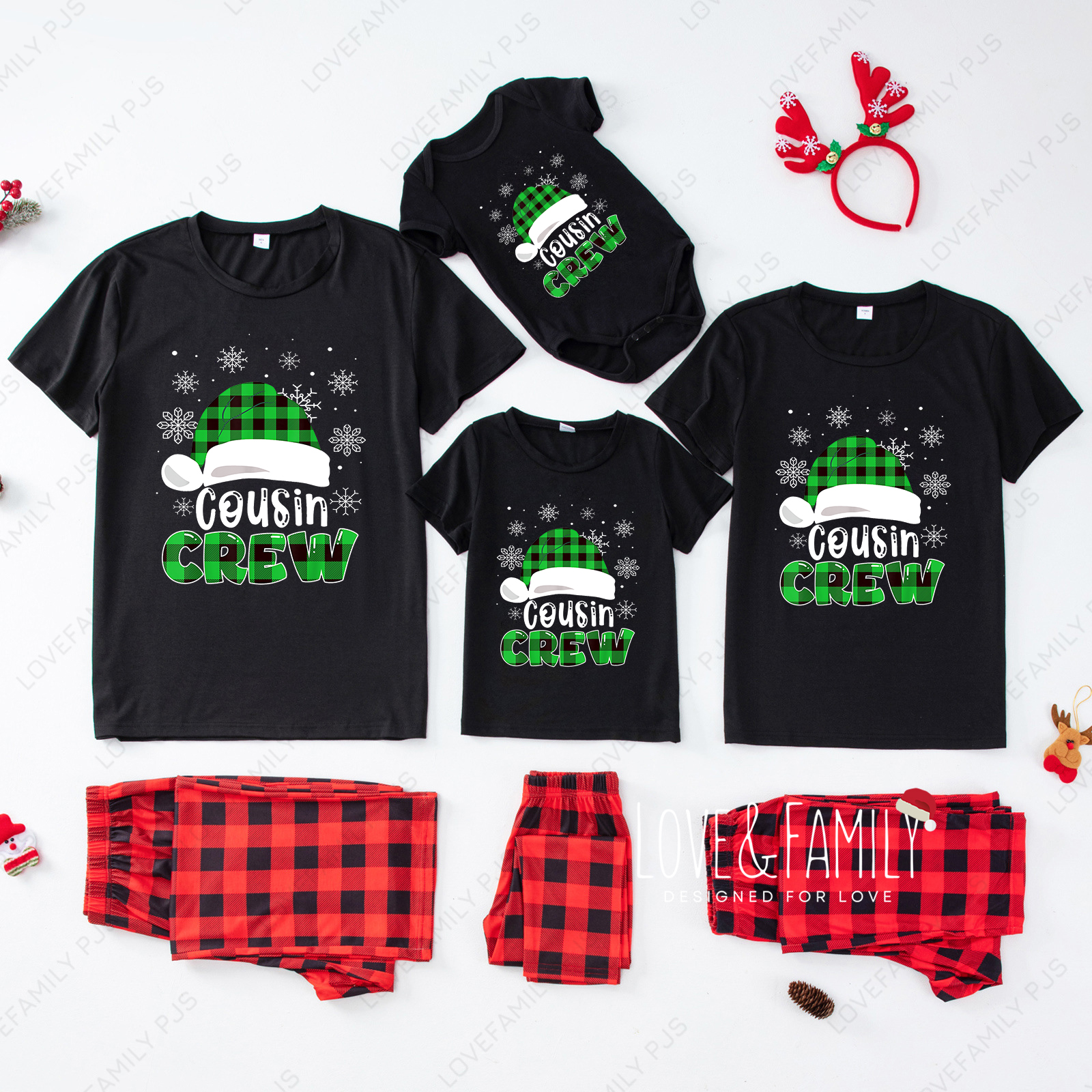 Consin Crew Christmas Green Family Matching Short Sleeve Pajamas