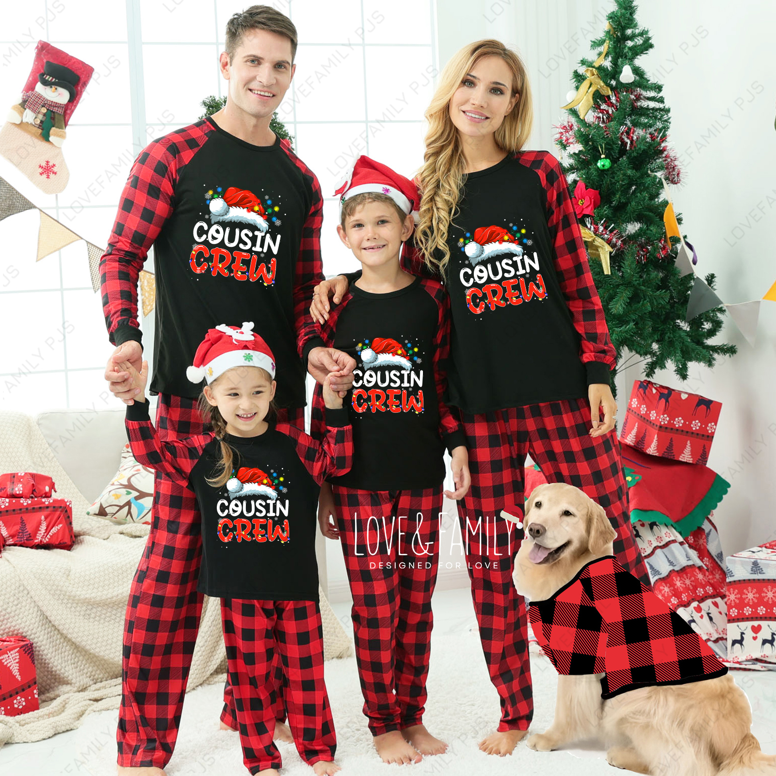 Consin Crew Christmas Hat Red Plaids Family Matching Pajamas Set