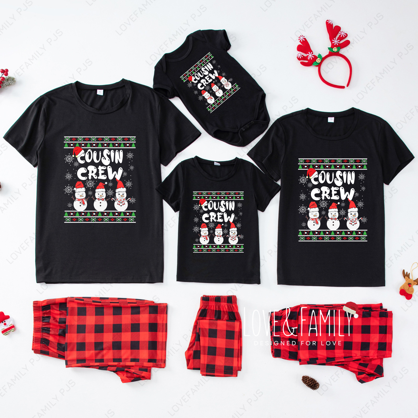 Consin Crew Snowman Christmas Family Matching Short Sleeve Pajamas Set