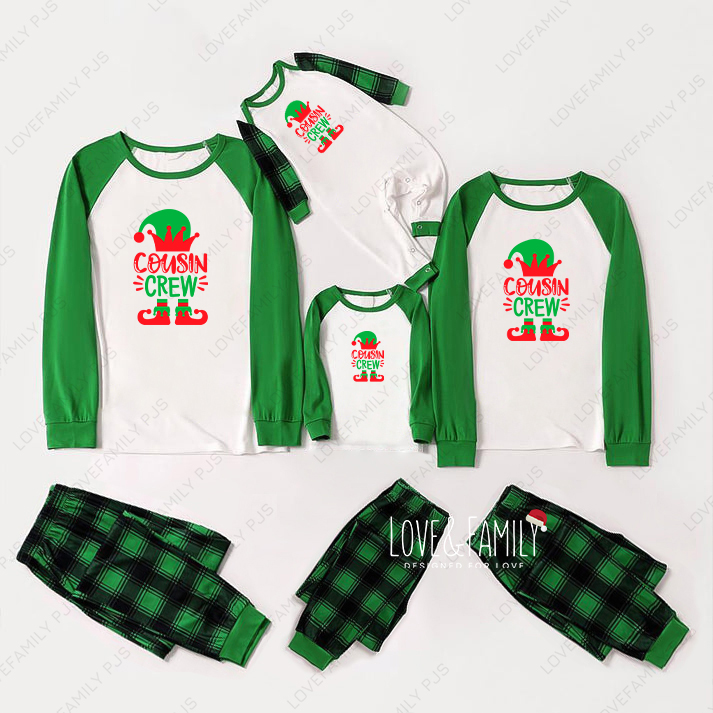 Cousin Crew Christmas Elf Print Green Plaid Family Pajamas Sets