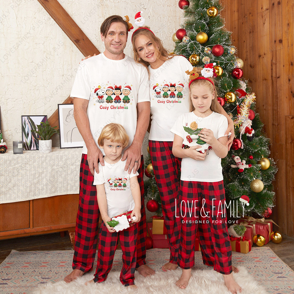 Cozy Christmas Family Pajamas Peanuts Print Holiday Sleepwear Set