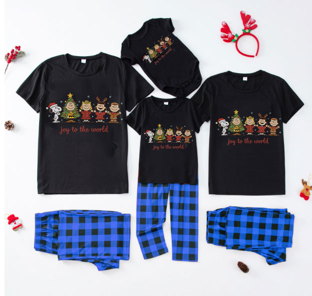 Cozy Holiday Sleepwear Set Joy To The World Peanuts Xmas Family Pajamas
