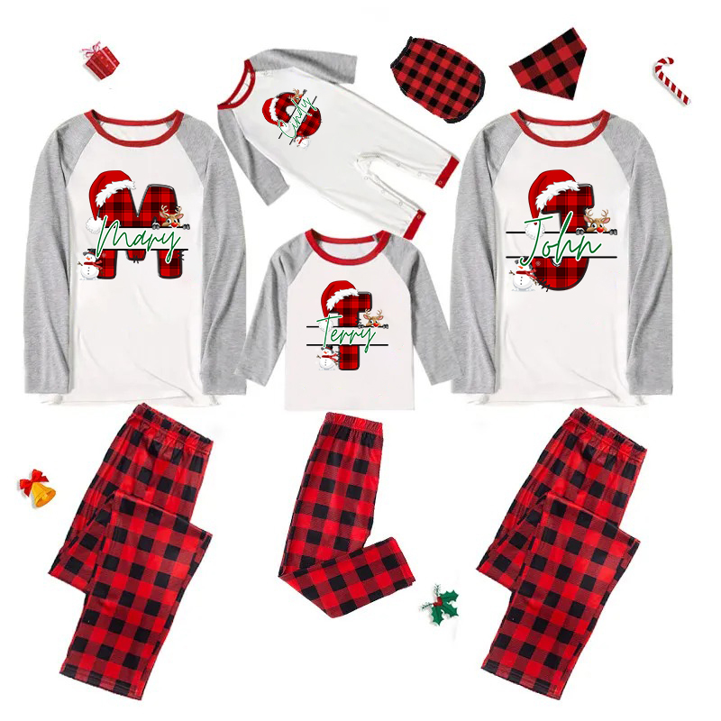 Custom Christmas Family Name Matching Pajamas Personalized Alphabet PJs Sets