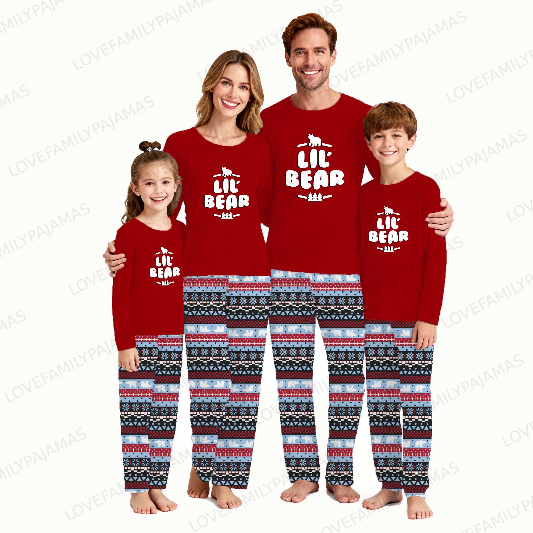 Cute Lil Bear Matching Family Pajamas For Christmas with Pockets