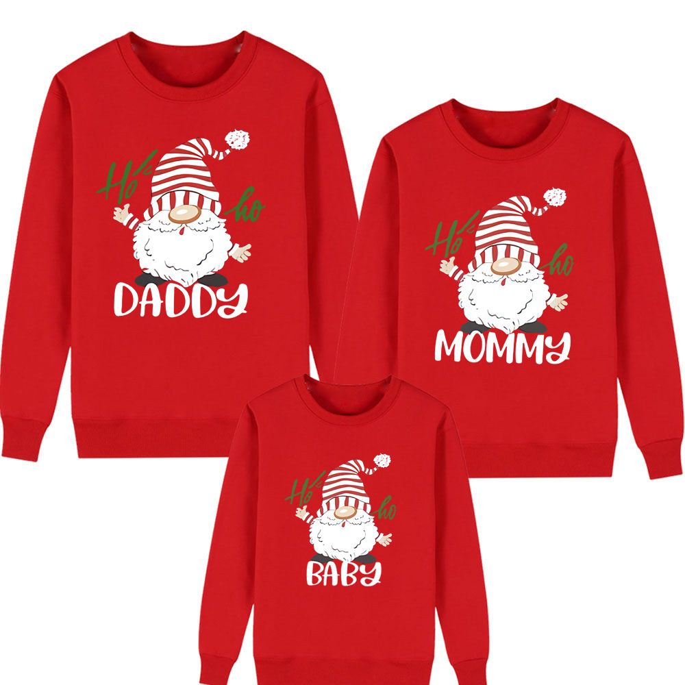 Daddy & Mommy & Baby Gnomes Christmas Long Sleeve Hoodie Matching Family Sweatshirt(Red)